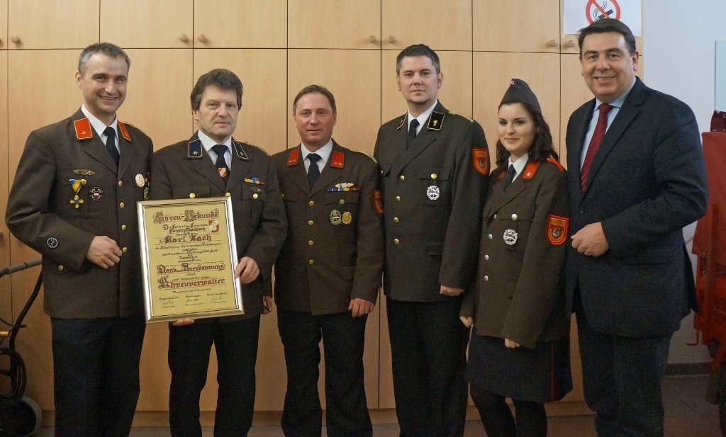 Das neue Kommando sprach den bisherigen Verwalter Karl Zach für seine 25 jährige Tätigkeit in seiner Funktion Dank und Anerkennung aus und