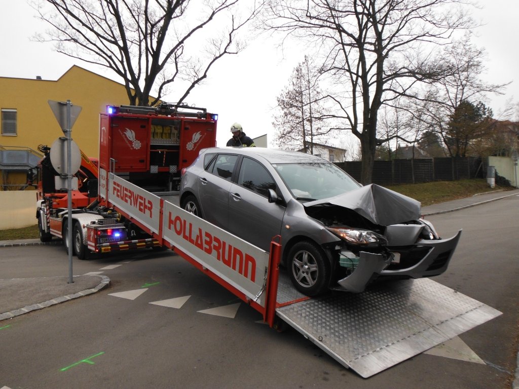 Die Einsatzkräfte der Freiwilligen Feuerwehr Hollabrunn entfernten mit dem Wechselladefahrzeug den beschädigten PKW von der Verkehrsfläche und stellten diesen an einem definierten Abstellplatz gesichert ab. Ausgelaufene Betriebsmittel mussten ebenfalls aufgefangen und entsorgt werden.