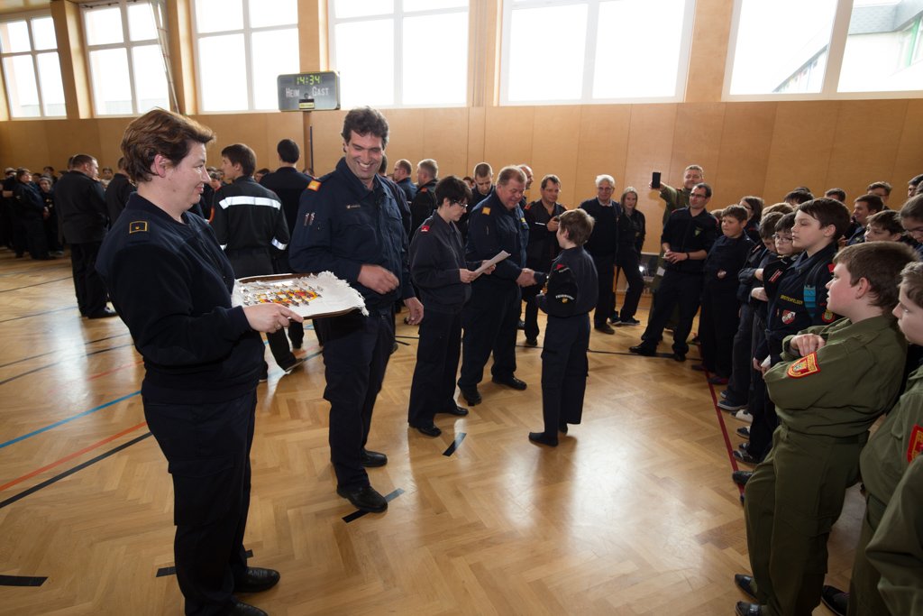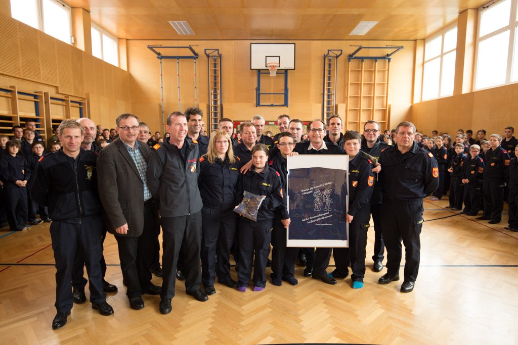 Ein besonderer Moment war noch die Verabschiedung von Andreas Leeb. Andreas Leeb hat 25 Jahre lang die Funktion des Bezirkssachbearbeiter Feuerwehrjugend ausgeführt und damit die Feuerwehrjugend ein Vierteljahrhundert geprägt. Als Dankeschön und Erinnerung erhielt er ein Fotobuch und signierte T-Shirts.