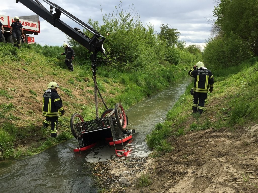 Zwei Personen, die auf der Kutsche saßen, schafften es noch rechzeitig abzuspringen und blieben unverletzt. Das Pferd ist noch an der Unfallstelle verstorben. Nach Absprache mit einer anwesenden Tierärztin wurde das Pferd sowie die Pferdekutsche mit dem Wechselladefahrzeug der Freiwilligen Feuerwehr Hollabrunn aus dem Göllersbach geborgen.