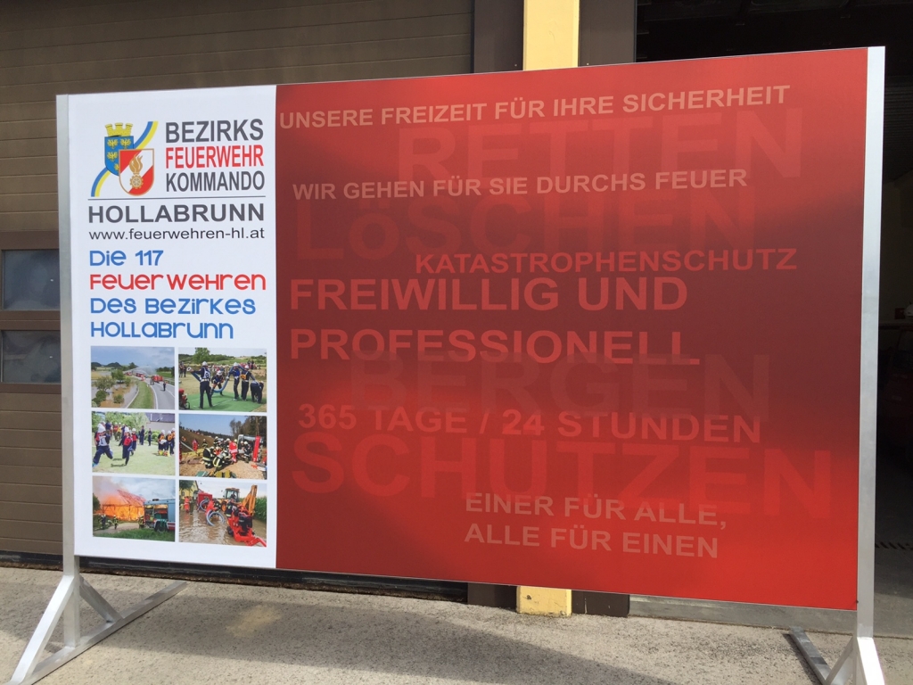 Es hat etwas länger gedauert, aber das Warten hat sich gelohnt! Sehr günstig organisiert von unserem Bezirksfeuerwehrkommandanten Alois Zaussinger und entworfen von Bezirkssachbearbeiter Wolfgang Thürr, präsentieren wir stolz unsere neue Werbewand. Die Wand wird bei vielen Veranstaltungen des Bezirksfeuerwehrkommandos und der Abschnittsfeuerwehrkommanden zu sehen sein. Wir freuen uns schon auf viele Gruppenfotos mit dem neuen Hintergrund.