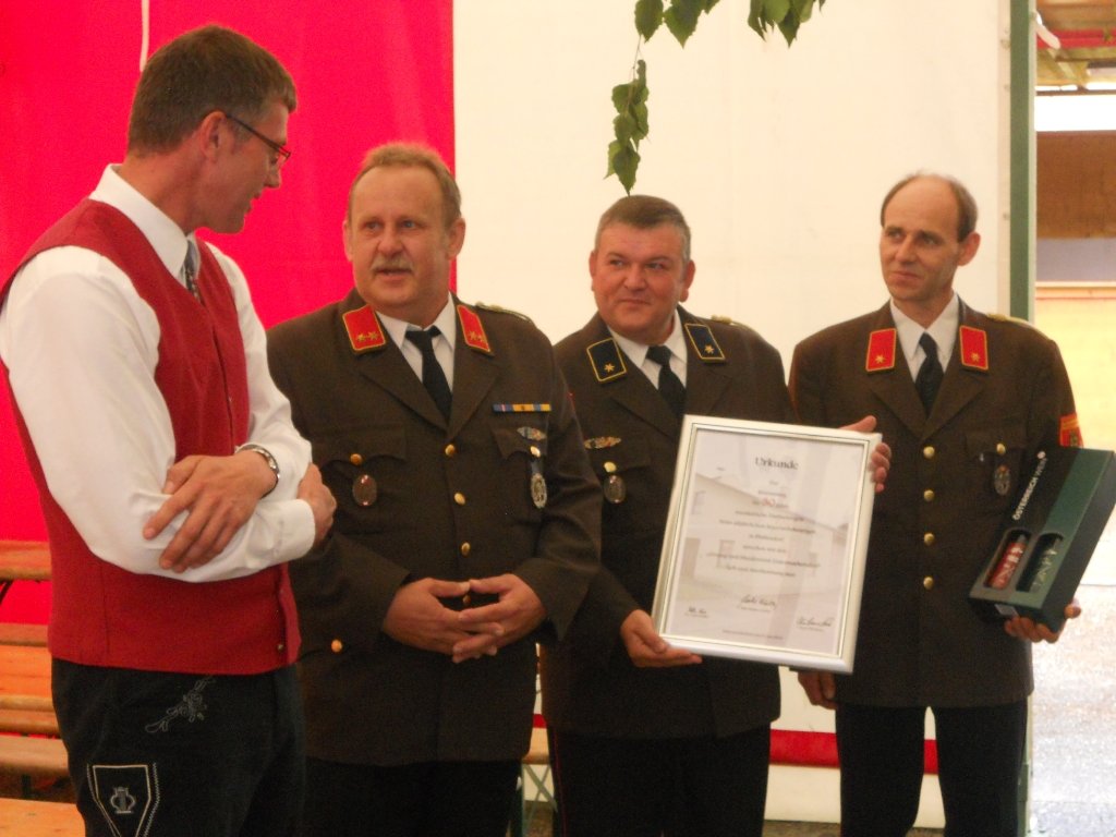 Die FF Pfaffendorf/Karlsdorf bedankte sich beim Gesang und Musikverein Untermarkersdorf mit einer Urkunde für 30 Jahre Musikalische Darbietung beim FF Heurigen in Pfaffendorf.