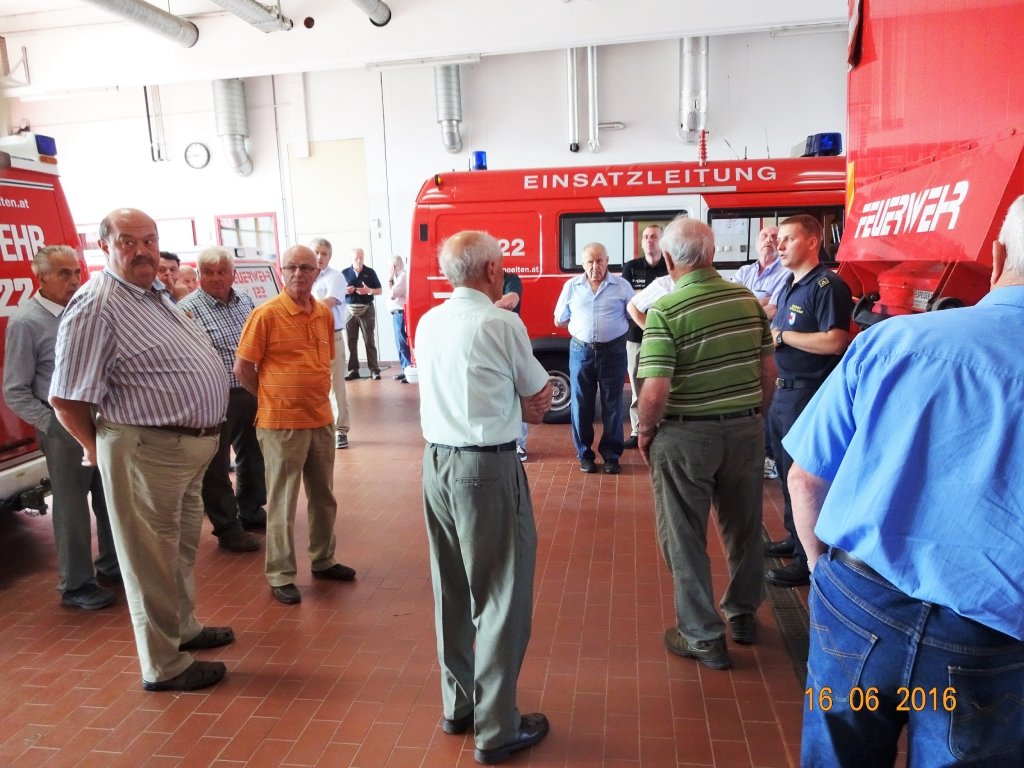 Gleich zu Beginn wurde die Feuerwehr der Stadt St. Pölten besichtigt, dabei nahm sich auch ELBD Willi Weissgärber gerne die Zeit für ein Zusammentreffen mit den Senioren des Bezirkes.