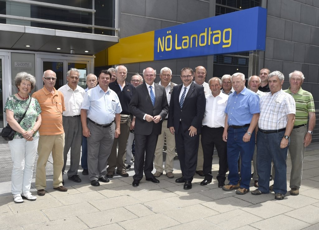 Bei der Führung durch das Landhaus wurde die Seniorengruppen dann durch Landeshauptmann Dr. Erwin Pröll und Abgeordneten zum NÖ Landtag Bgm. Richard Hogl herzlich begrüßt. Im Landhaus fand aktuell eine Sitzung des Budgetkapitels 5 (Gesundheit) statt, in der auch unsere Ehrendienstgrade dann offiziell begrüßt wurden.