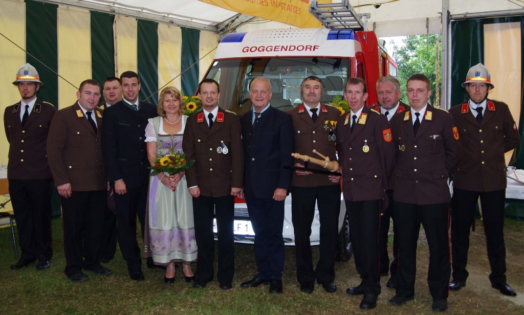 Kommandant Markus Brudl und die Kameraden der Freiwlligen Feuerwehr Goggendorf freuen sich über das neue HLF1-W.