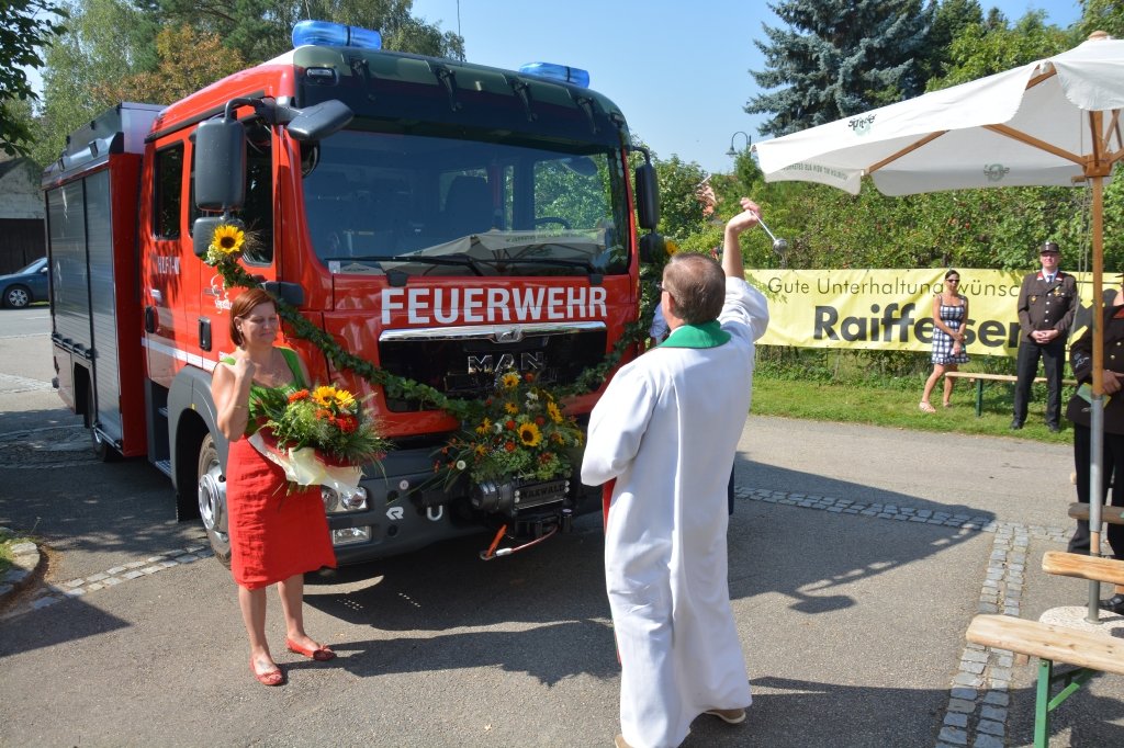 Bei Kaiserwetter wurde das neue HLF1-W mit hydraulischen Bergesatz, 500 Liter Wassertank und Seilwinde mit der Fahrzeugsegnung offiziell ihrer Bestimmung übergeben.