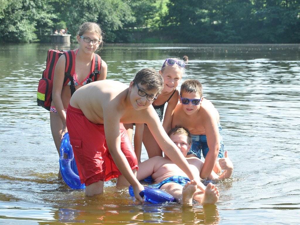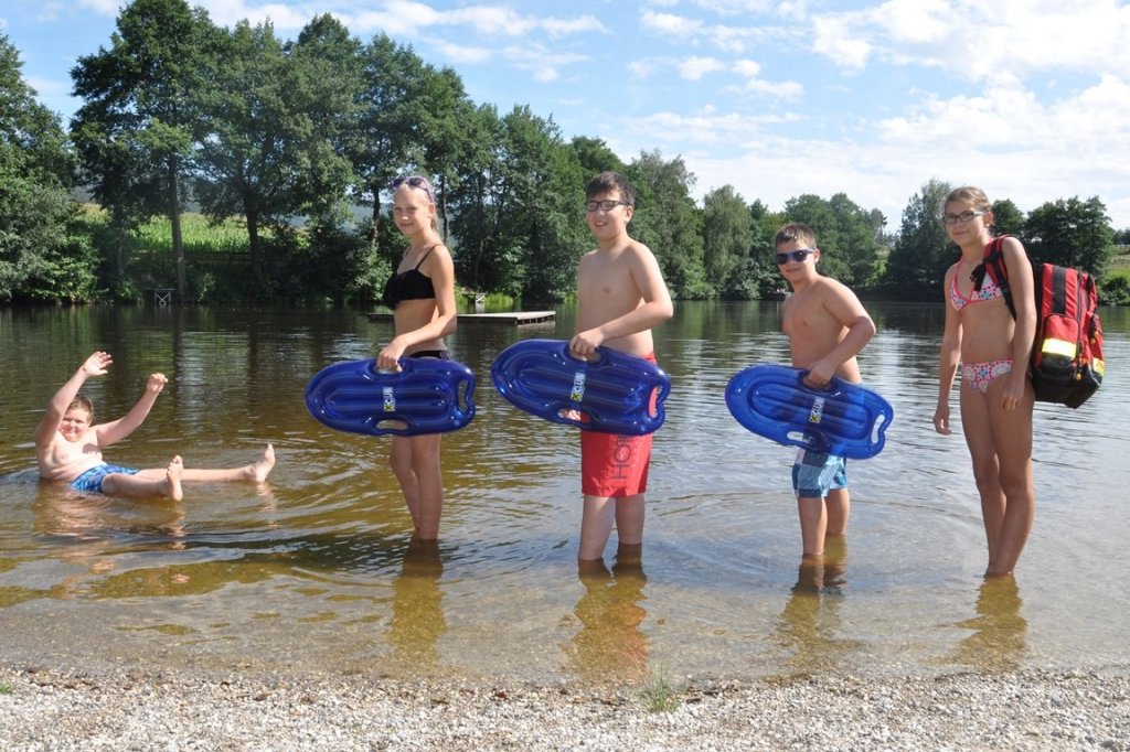 Gestärkt vom Mittagessen machten wir uns auf den Weg zum nah gelegenen Puschacherteich. Dort verbrachten wir bis zum Abend einen heißen Badetag. Nach dem Badevergnügen am Puschacherteich stärkten wir uns am Abend mit gegrillten Käsekrainer, Kotelett und Pommes.