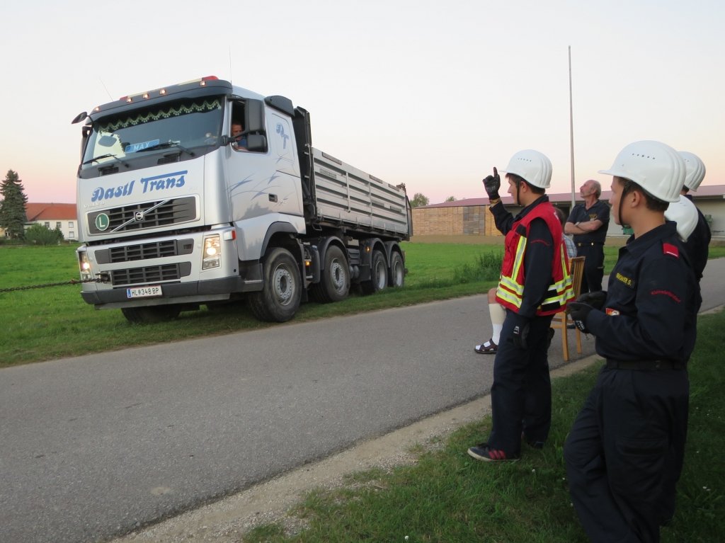 Das Kommando der Freiwilligen Feuerwehr Kleinstetteldorf bedankte sich im Anschluss bei den Kameraden der Feuerwehr Hollabrunn für die Ausbildung mit den Hebekissen und der Seilwinde sowie bei der Firma Dastl Transporte für die zur Verfügung Stellung eines LKW.
