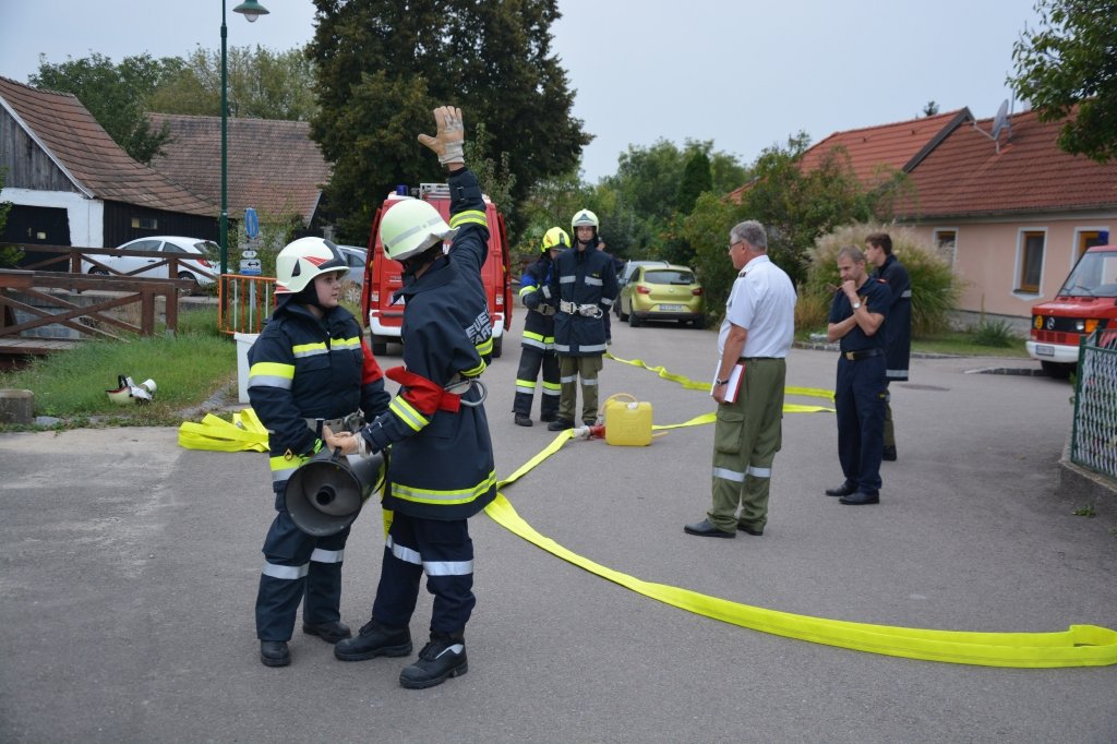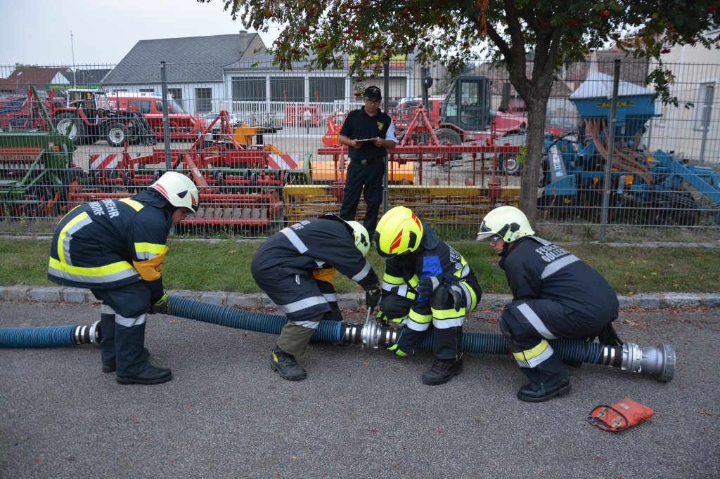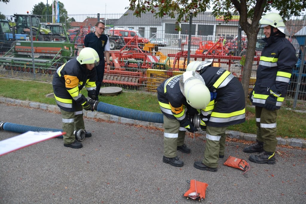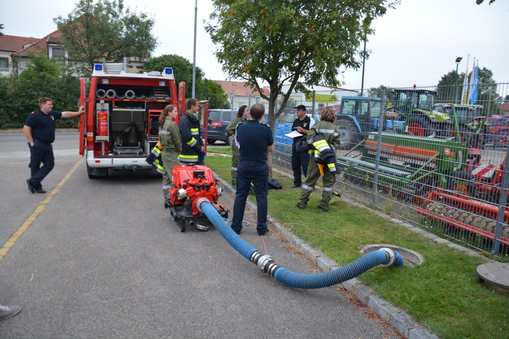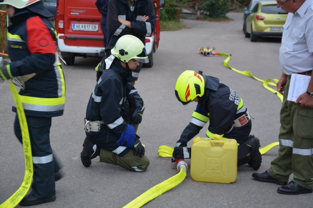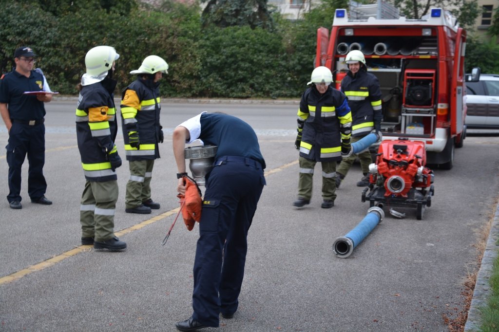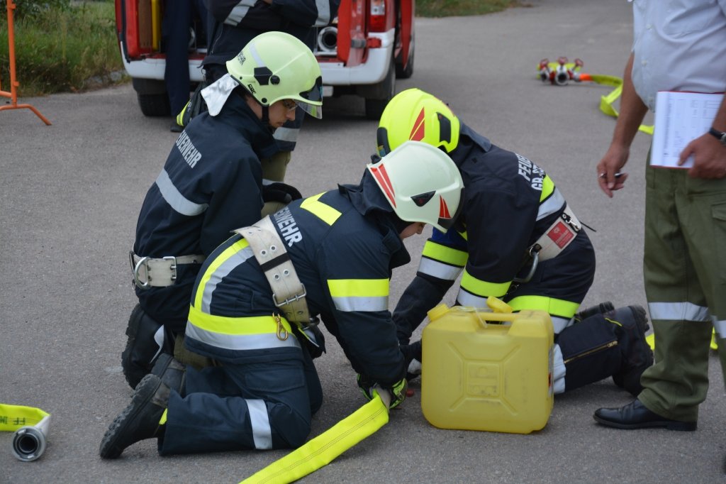 Es gab 4 Stationen: technische Gruppe (Verkehrsunfall), Löschgruppe (Herstellen einer Saugleitung), Arbeiten mit Leitern und einen Schaumangriff mussten von den Kandidaten unter Beweis gestellt werden. Dabei mussten sie ihr theoretisches und praktisches Wissen unter Beweis stellen. Leiter des Abschlussmoduls-Truppmann war EHBI Leopold Dondl mit seinem Team.