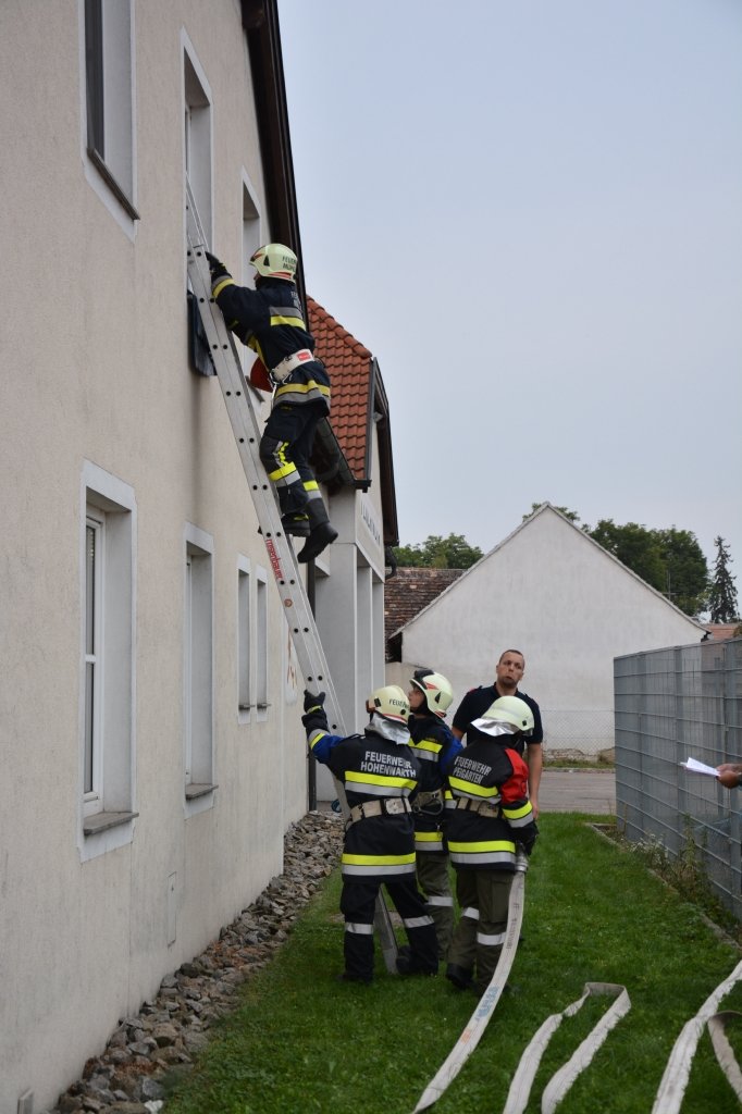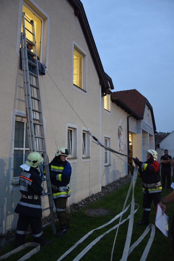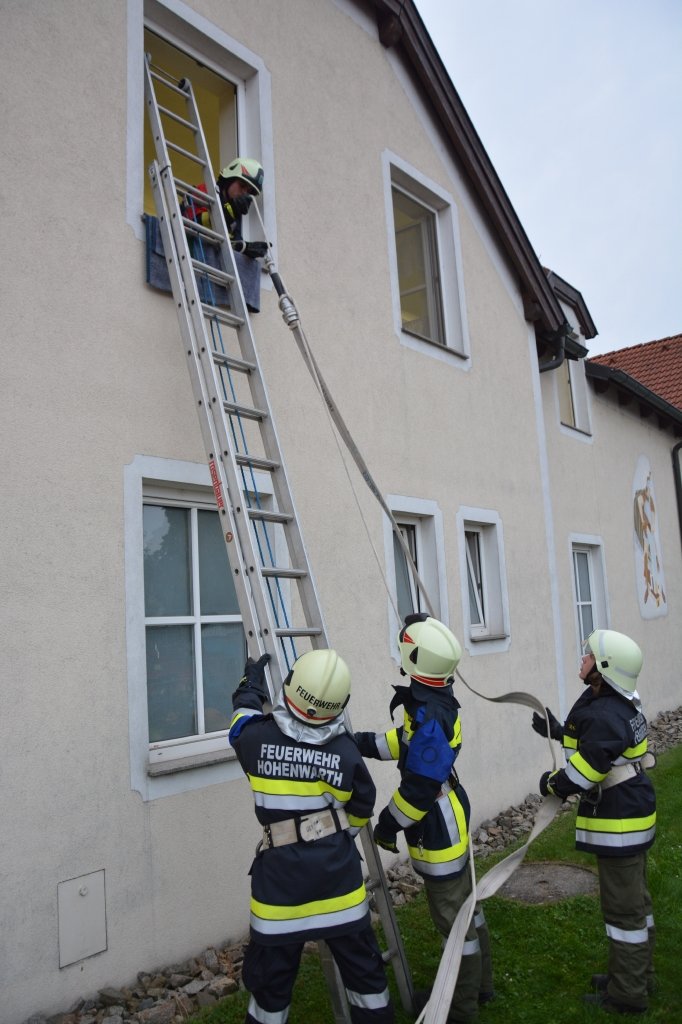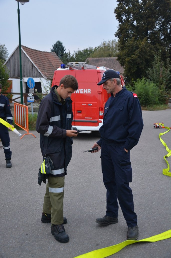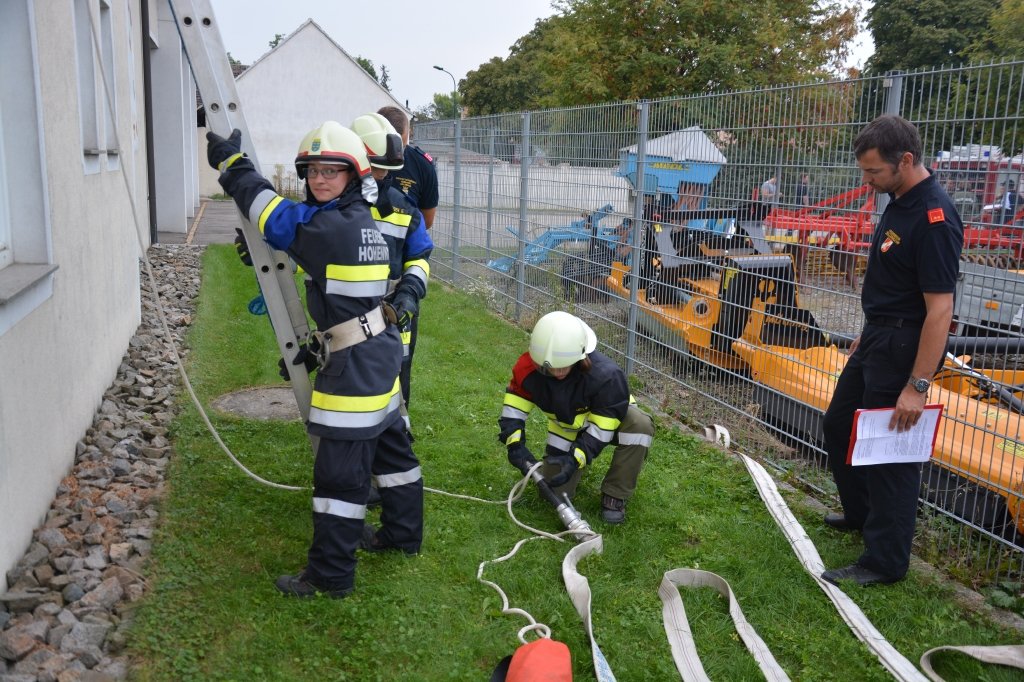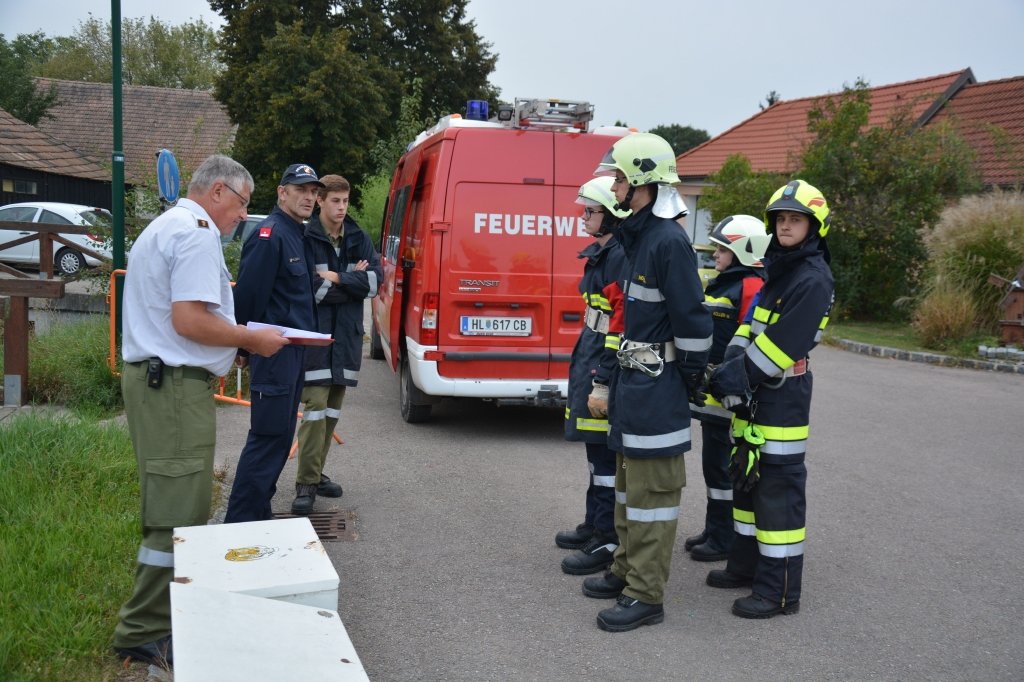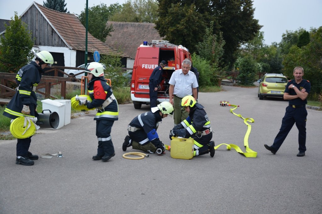Es gab 4 Stationen: technische Gruppe (Verkehrsunfall), Löschgruppe (Herstellen einer Saugleitung), Arbeiten mit Leitern und einen Schaumangriff mussten von den Kandidaten unter Beweis gestellt werden. Dabei mussten sie ihr theoretisches und praktisches Wissen unter Beweis stellen. Leiter des Abschlussmoduls-Truppmann war EHBI Leopold Dondl mit seinem Team.