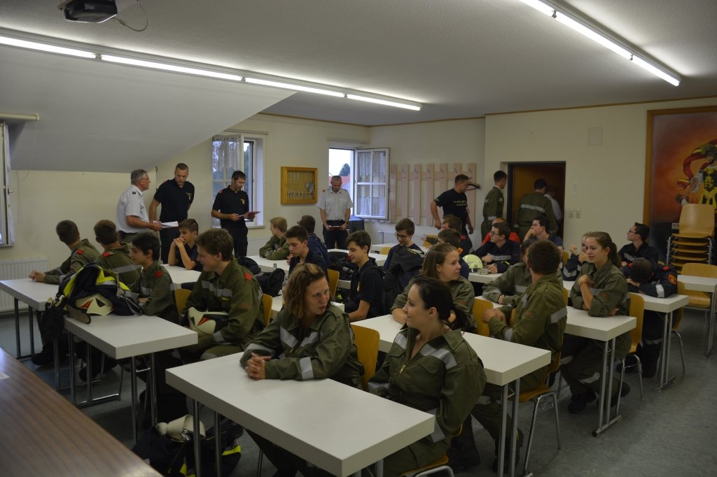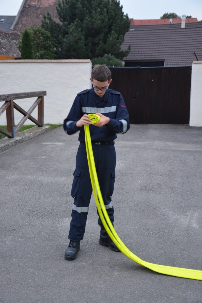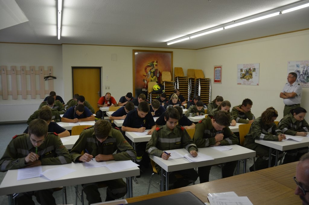 Die Jungfeuerwehrmänner wurden zuerst schriftlich geprüft. Danach wurden die Stationen ausgelost. Man musste nur eine praktische Station machen.