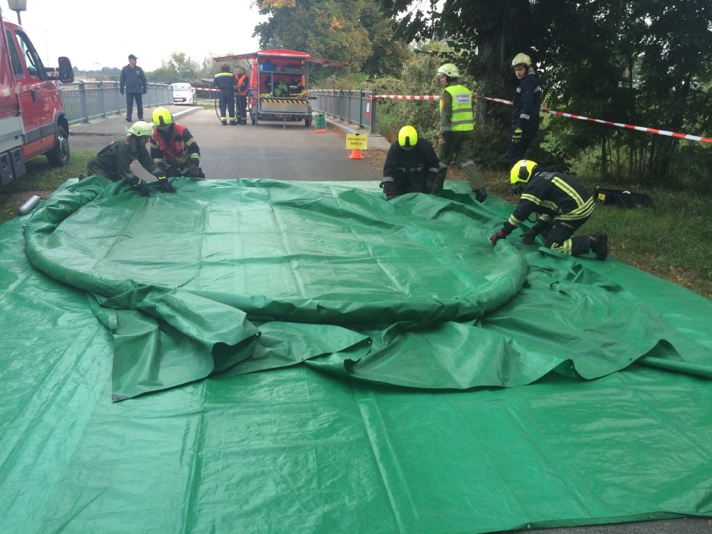 „Gefahrengutunfall mit einem Tierkadavertransporter bei der Kläranlage Seefeld-Kadolz“ lautete die Alarmierung zur Einsatzübung der vier Schadstoffeinsatzgruppen des BFKDO Hollabrunn am Freitag, 16. September 2016.