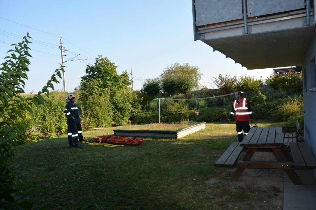 Des weiteren simulierte die FF Unternalb gemeinsam mit der FF Retz auch eine Bergung aus dem 2 Stock mit einer normalen Leiter.