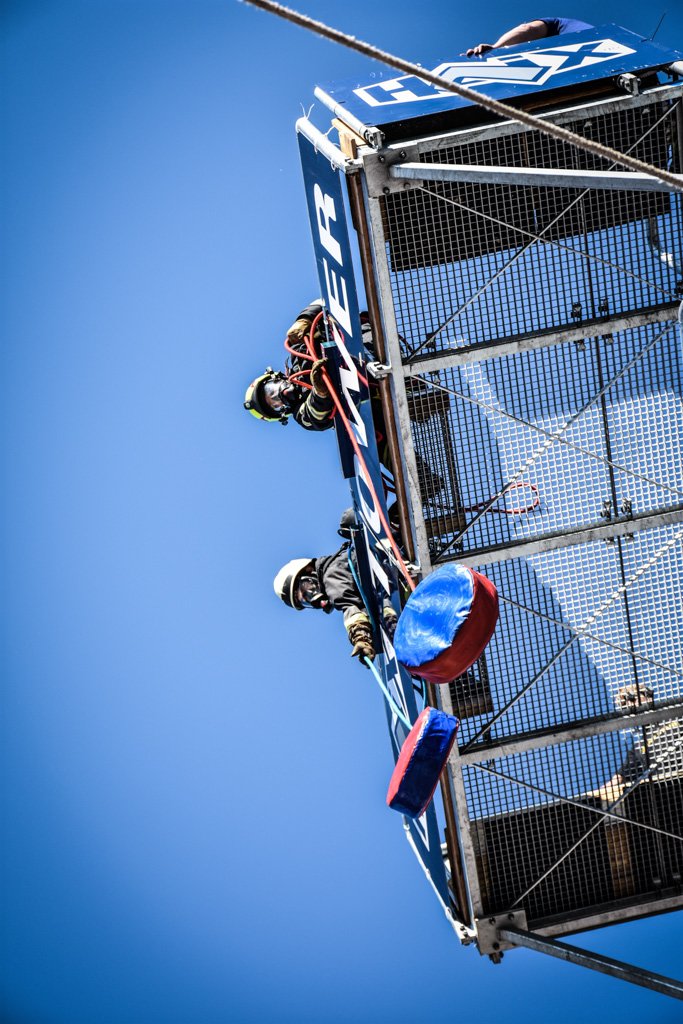 Dieser besteht aus Stiegen steigen, Schlauch aufziehen und ausziehen, ein 75kg Gewicht Schlagen, Slalom laufen und eine 80kg Puppe ziehen.