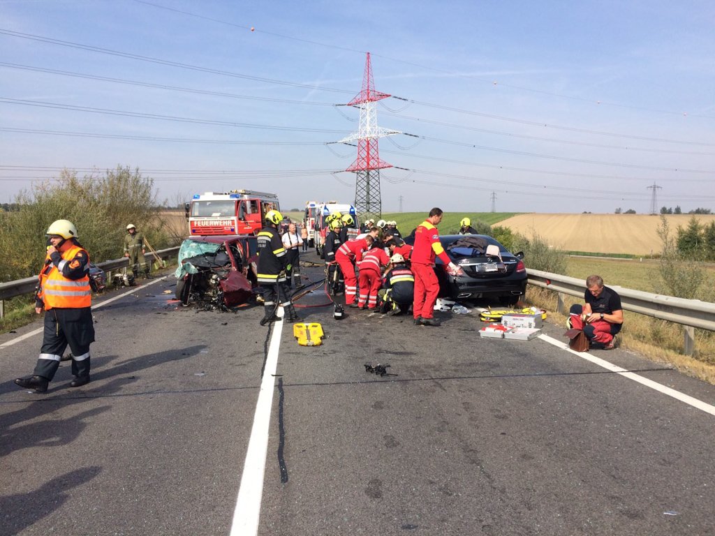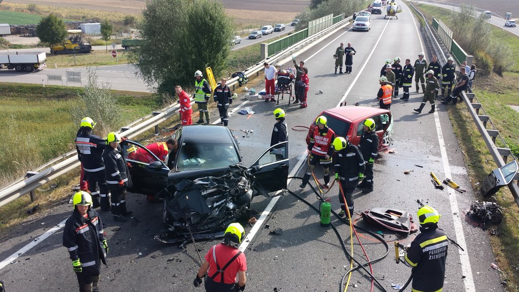 Auf der Bundestraße 4 bei Ziersdorf, auf Höhe der Brücke, krachten zwei PKWs frontal gegeneinander, ein drittes Fahrzeug wurde dabei ebenfalls in den Unfall verwickelt.