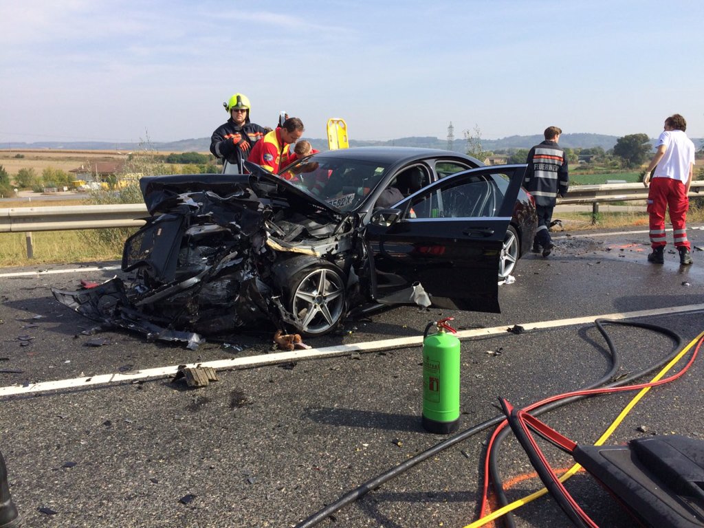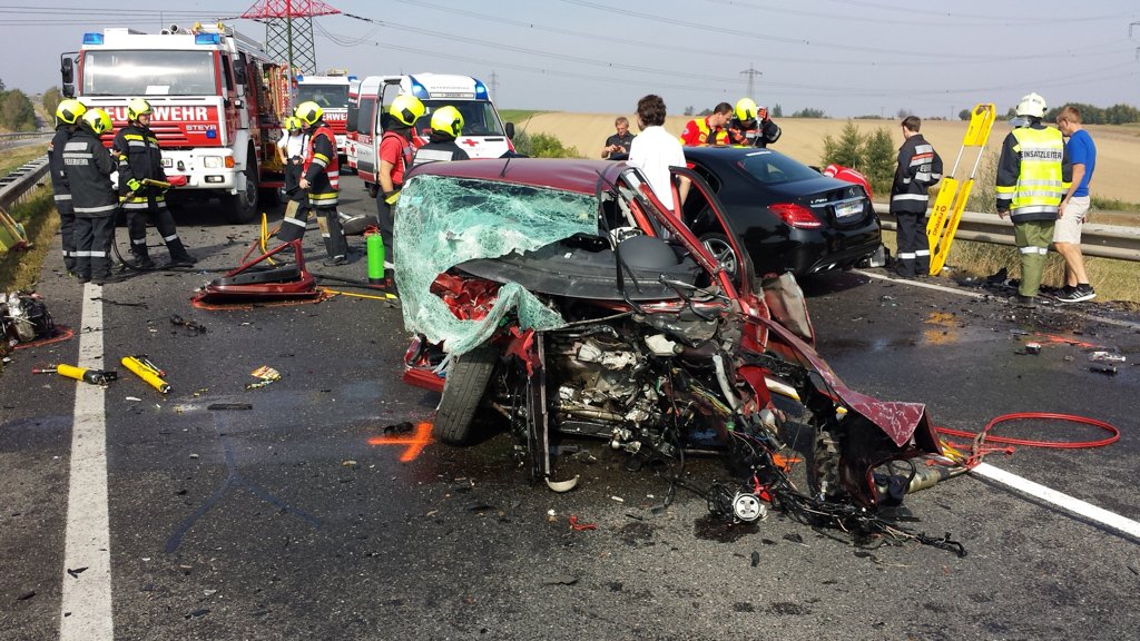 Kurz vor Mittag am 01. Oktober 2016 wurden vier Feuerwehren, zu einem Verkehrsunfall mit mehreren verletzen Personen alarmiert. Die erste Alarmmeldung wurde über ein automatisches System, über den im Unfall verwickelten Mercedes ausgelöst.