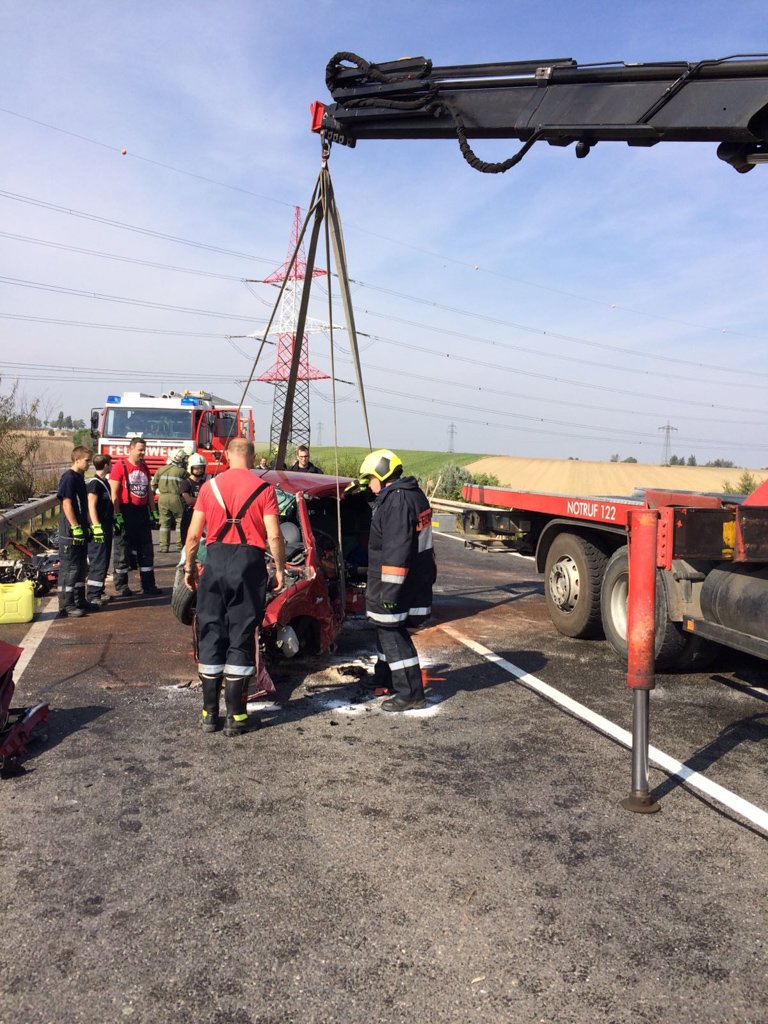 Danach mussten die Feuerwehrmitglieder die traurige Pflicht übernehmen und ebenfalls unter Anwendung von hydraulischen Rettungsmittel die Bergung des tödlich verletzten Unfallopfers durchführen.