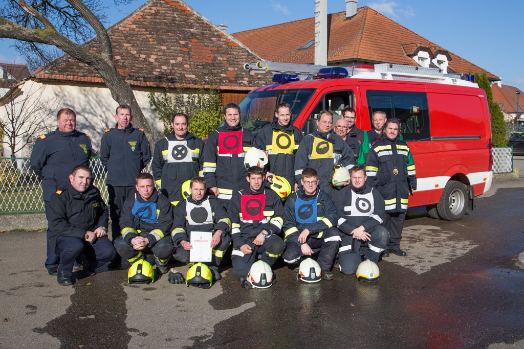 9 Kommandanten bzw. Kommandant-Stellvertreter aus der Markgemeinde Wullersdorf traten gemeinsam am 13.11.2016 zur Ausbildungsprüfung Löscheinsatz in Bronze an.