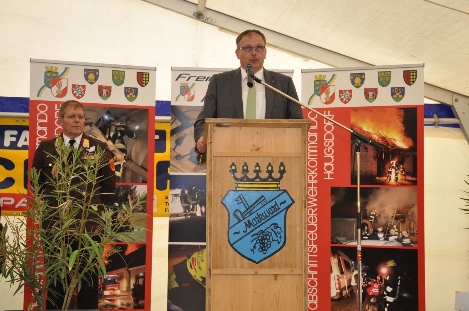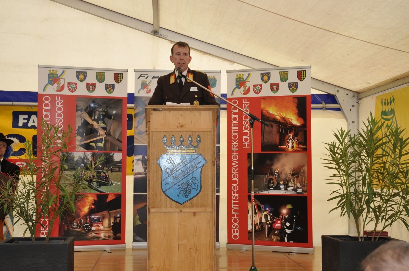 Feuerwehrkommandant der FF Untermarkersdorf Oberbrandinspektor Andreas Kornherr und Abschnittskommandant Brandrat Adolf Waltner konnten zahlreiche Ehrengäste, darunter den Abgeordneten zum Landtag Richard Hogl, Bezirksfeuerwehrkommandant Landesfeuerwehrrat Alois Zaussinger und dessen Stellvertreter Brandrat Reinhard Scheichenberger, Mag. Barbara Salzer (BH Hollabrunn), die Bürgermeister Karl Weber und Christian Hartmann, Vizebürgermeister Karl Schnitzer sowie zahlreiche Feuerwehrfunktionäre aus den anderen Abschnitten des Bezirkes Hollabrunn begrüßen. Nach der Kranzniederlegung beim Kriegerdenkmal zum Gedenken an die gefallenen und verstorbenen Kameraden ging es zum Festgelände. Feuerwehrkommandant Andreas Kornherr eröffnete in seiner kurzen Rede den Festakt zum Abschnittsfeuerwehrtag und übergab anschließend das Wort an Abschnittsfeuerwehrkommandant Adolf Waltner. Bürgermeister Karl Weber, LAbg. Richard Hogl und Mag. Barbara Salzer gratulierten in ihren Reden den Feuerwehren des Abschnittes Haugsdorf zu deren Leistungen im abgelaufenen Jahr und betonten den wichtigen Stellenwert der Feuerwehr in der Gesellschaft. LFR Alois Zaussinger berichtete von den Neuigkeiten aus dem Landesfeuerwehrkommando und anderen Feuerwehrgremien und betonte dabei die anstehenden großen Änderungen bei der Ausbildung der Feuerwehrmitglieder.