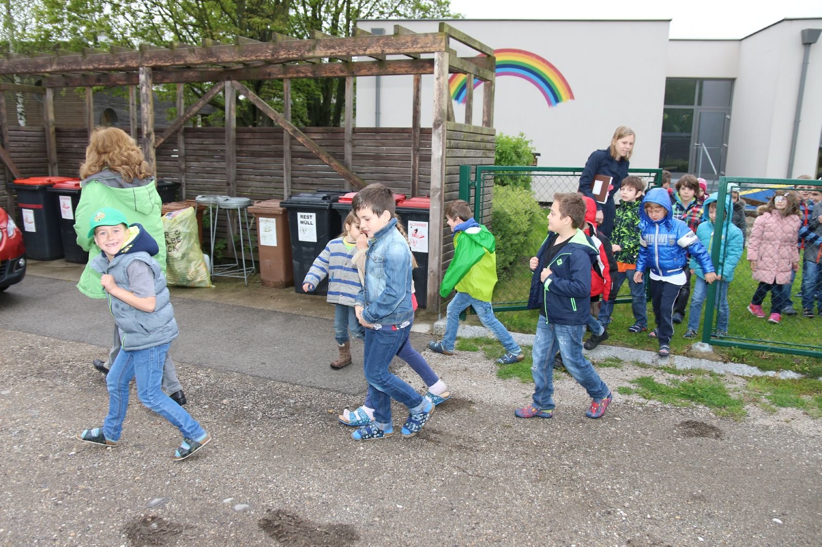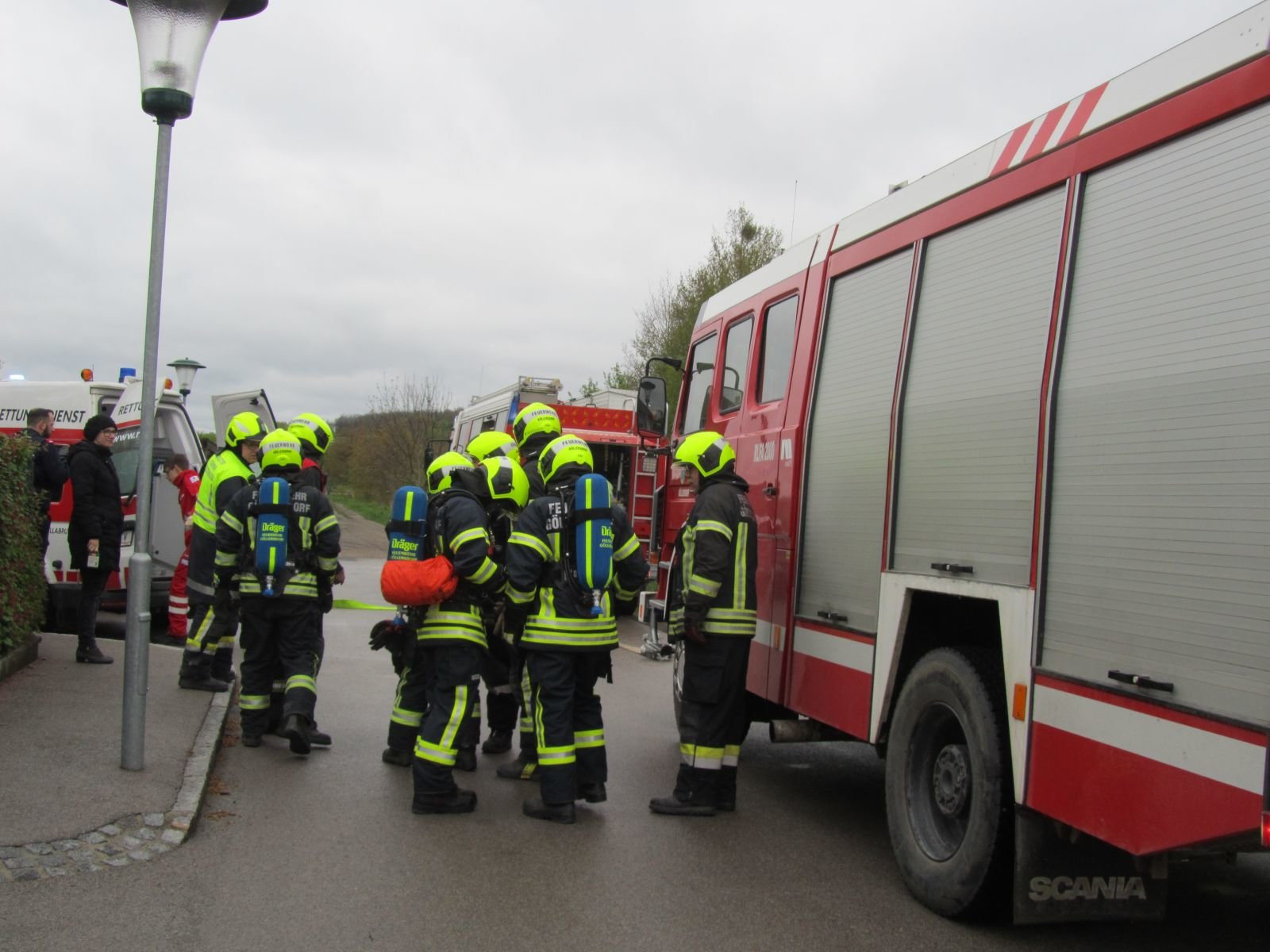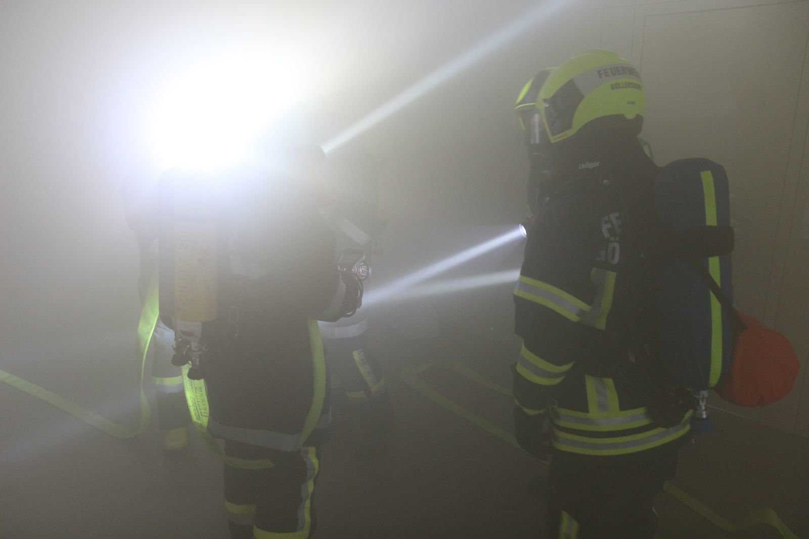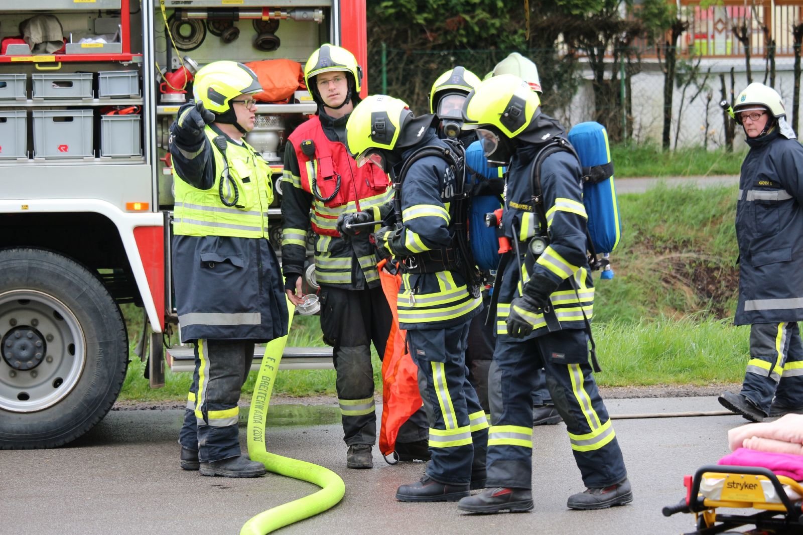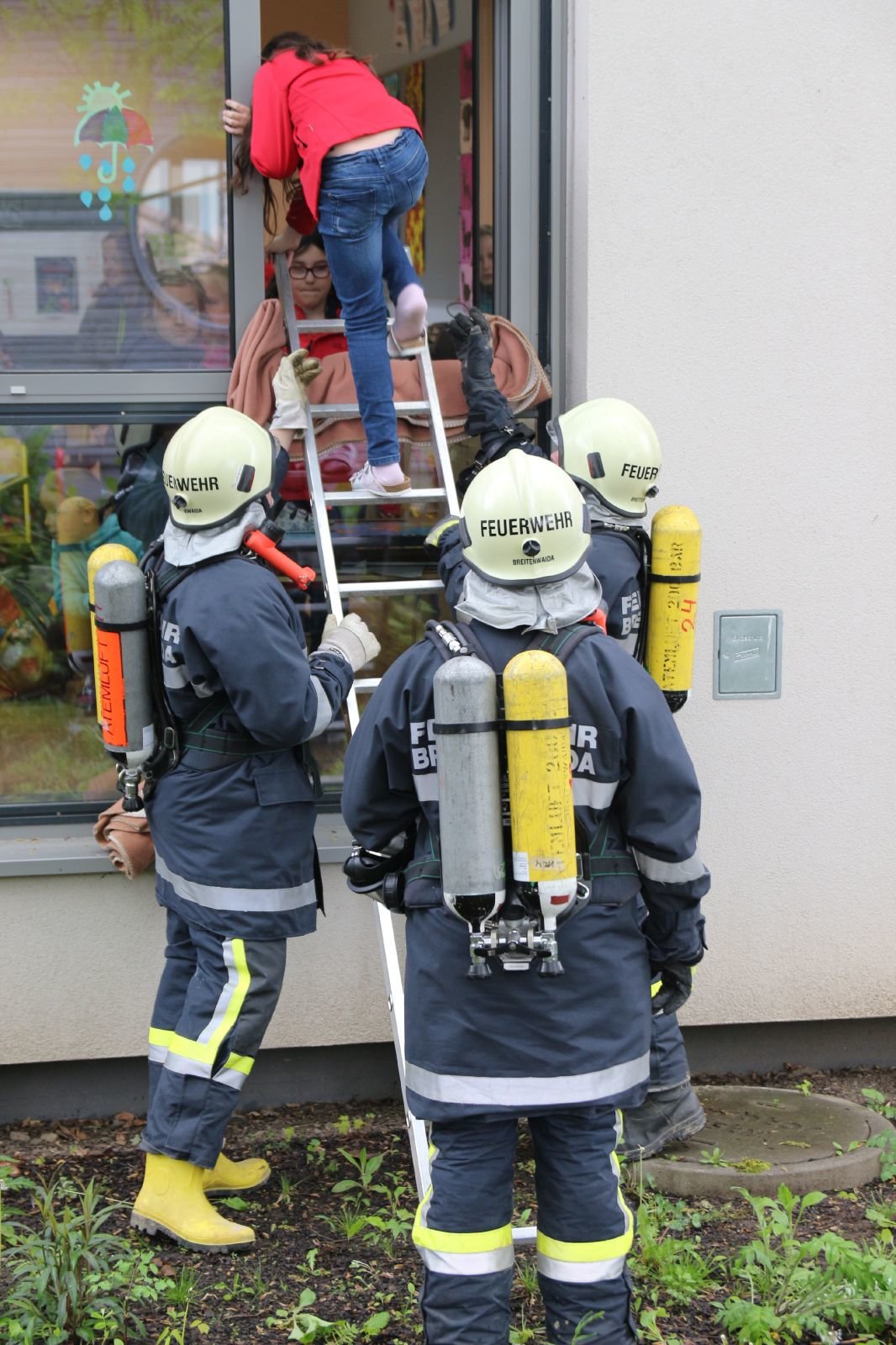 Die Aula der Volksschule war stark verraucht, eine Lehrperson sowie eine Klasse konnte nicht mehr selbst ins Freie flüchten. Die Direktorin war in ihrem Büro verletzt eingeschlossen. Die Kinder der anderen Klassen und des Kindergarten waren bereits an den Sammelplätzen.