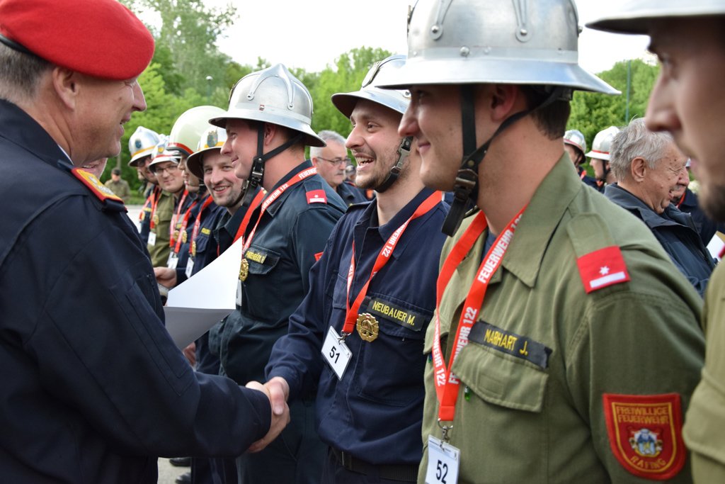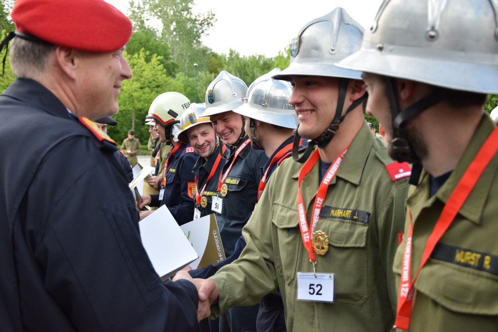 Trotzdem gab es Grund zum Feiern. Konnten doch 17 Teilnehmer aus dem Bezirk das Bewerbsziel erreichen, so viele wie nie zu vor. Funktionäre aus allen vier Abschnittsfeuerwehrkommanden, dem Bezirksfeuerwehrkommando aber auch viele Unterabschnittsfeuerwehrkommandanten würdigten die Leistungen aller Teilnehmer mit Ihrer Teilnahme zur Siegerehrung.