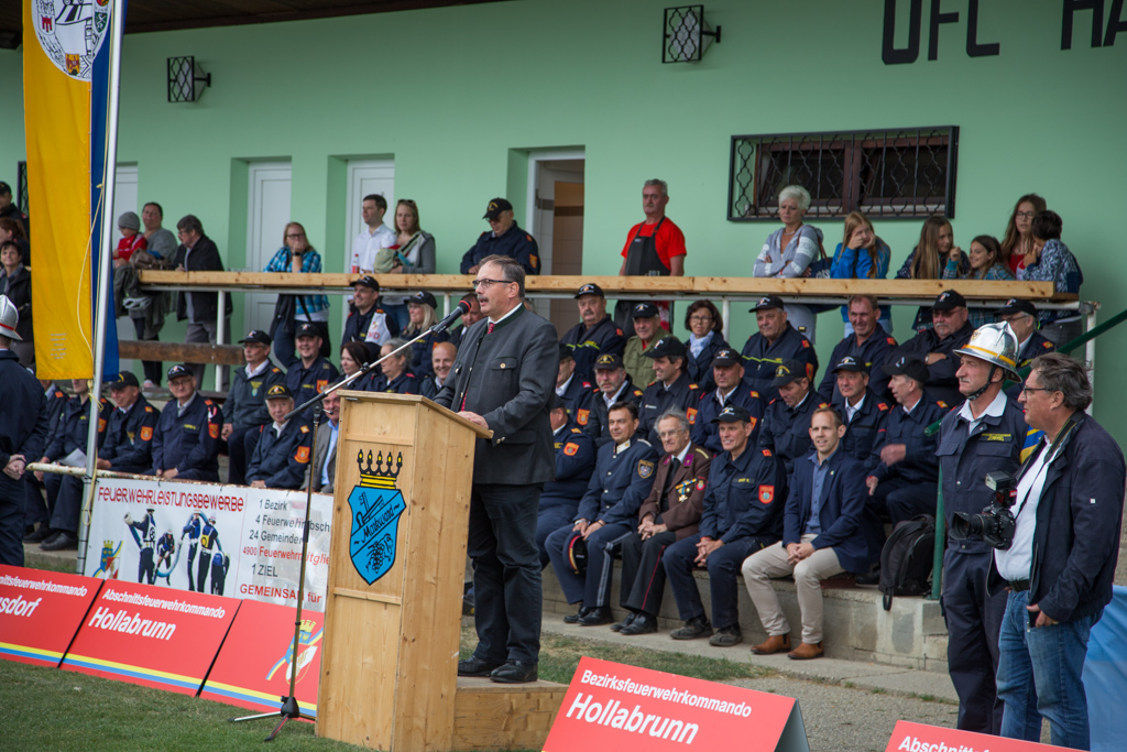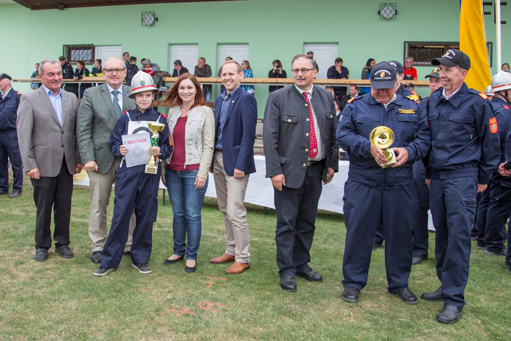 Bei der Eröffnung und Siegerehrung konnte Bezirksfeuerwehrkommandant Alois Zaussinger zahlreiche Feuerwehrfunktionäre und prominente Gäste begrüßen. Darunter Abgeordnete zum Nationalrat Eva-Maria Himmelbauer, Abgeordneter zum Landtag Richard Hogl, Abgeordneter zum Landtag Georg Ecker, Bezirkshauptmann Mag. Andreas Strobl, Bürgermeister Karl Weber, Feuerwehrkurat Willibald Steiner sowie von Seiten der Polizei Martin Koran.