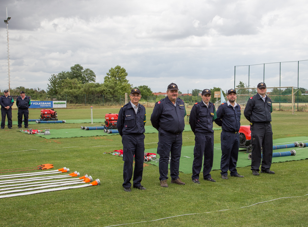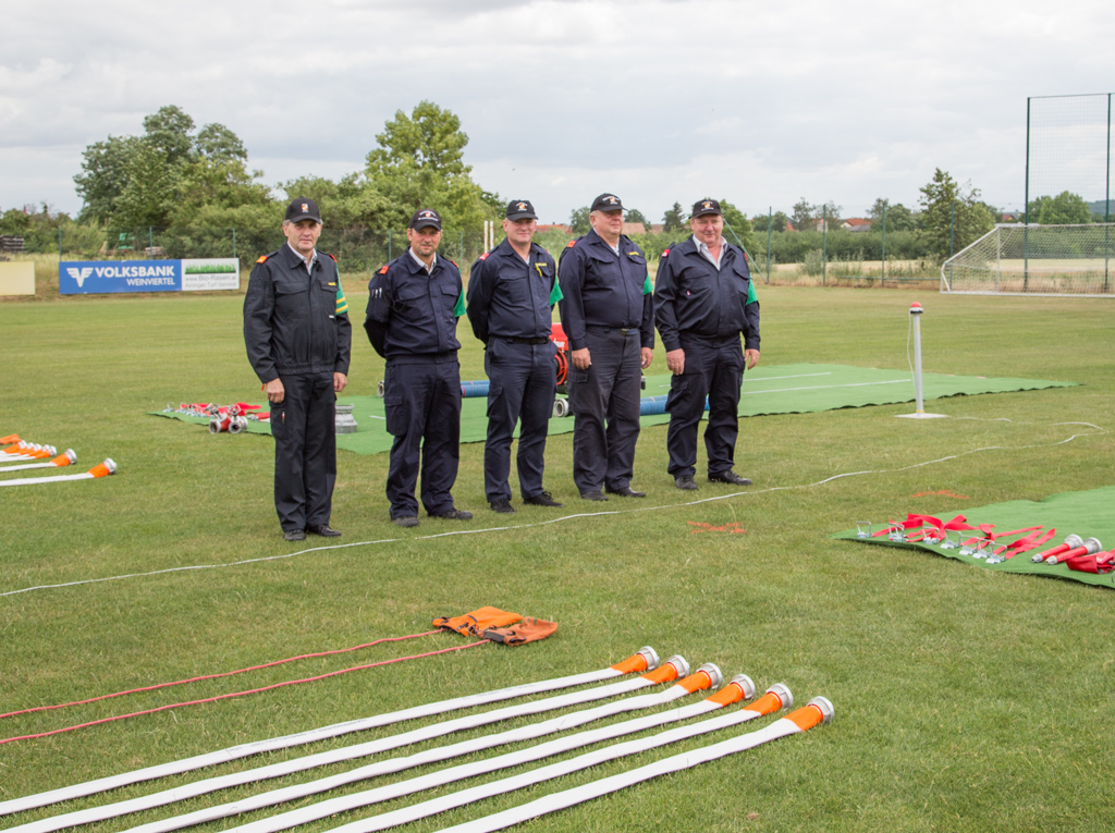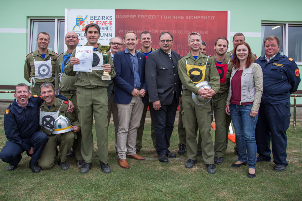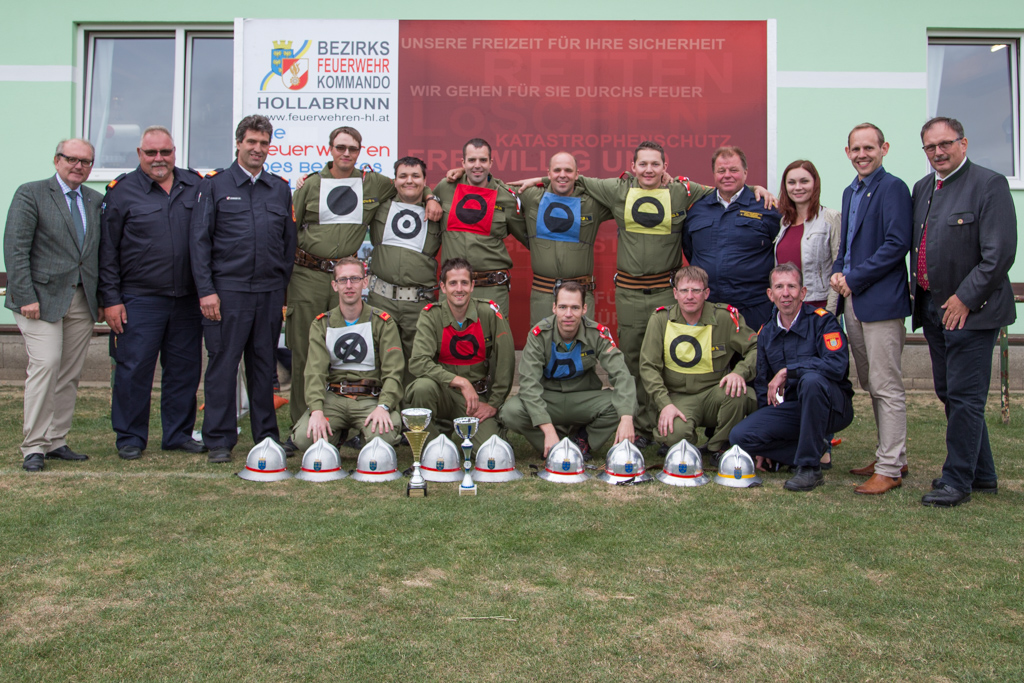 Viele hochrangige Feuerwehrfunktionäre waren nicht nur als Besucher, sondern auch als Teilnehmer mit dabei. Auch der ehemalige Abschnittsfeuerwehrkommandant und Leiter der Katastrophenhilfsdienstbereit EBR Alfred Schönhofer kämpfte in der schwierigen Position als Wassertruppführer um jede Sekunde – 10 Tage vor seinem 65. Geburtstag
