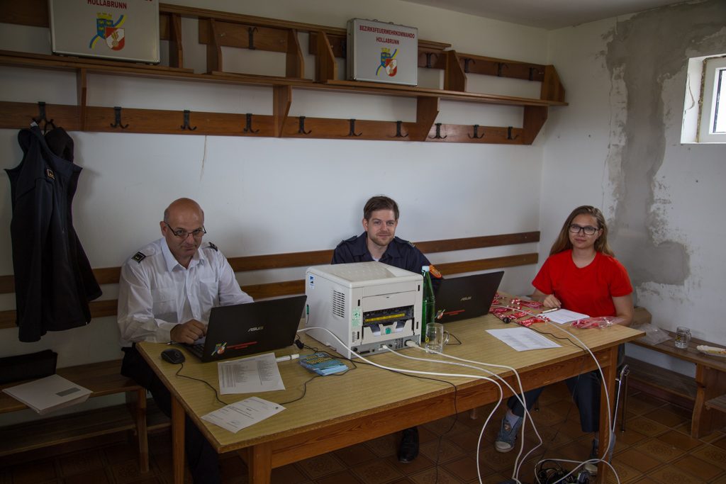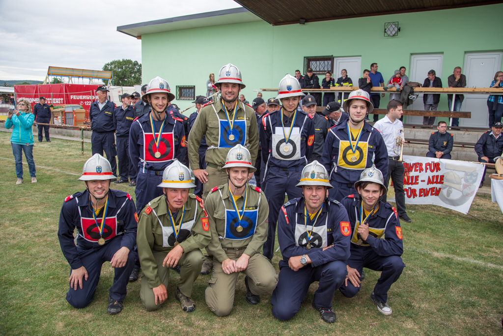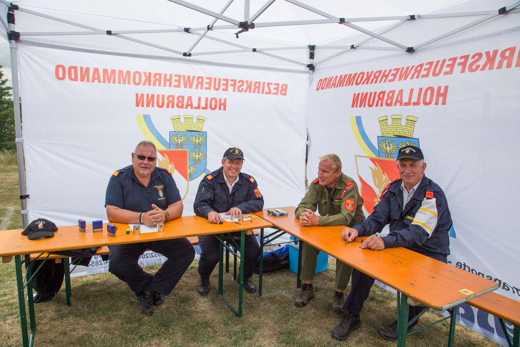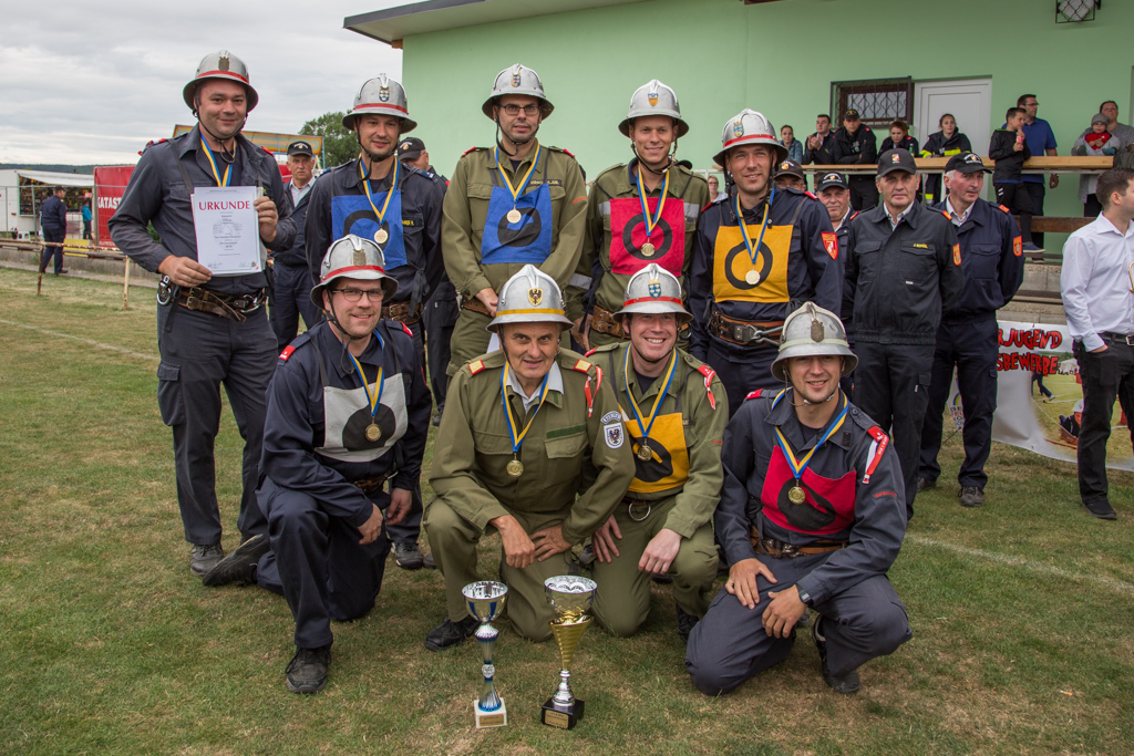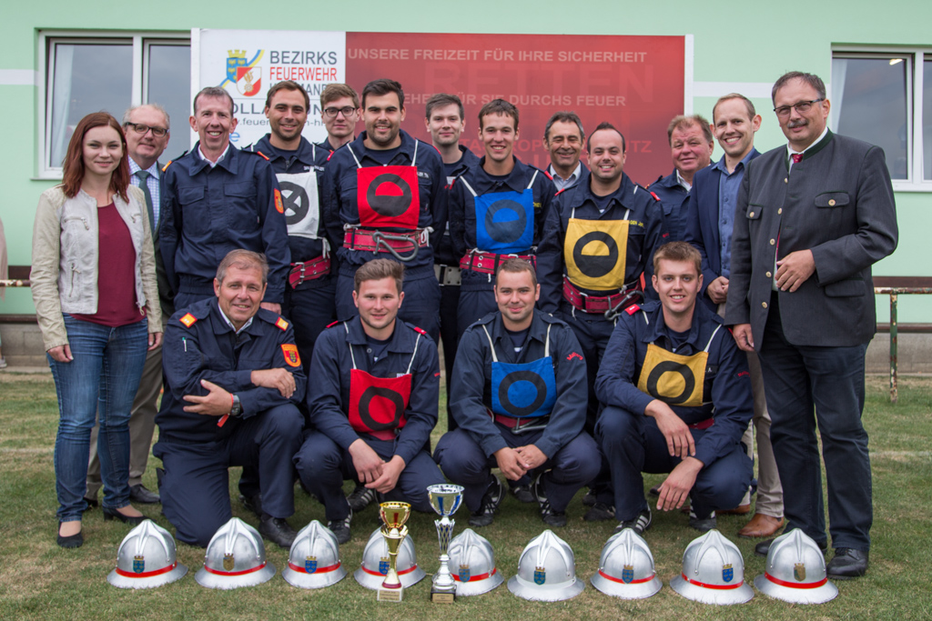 Viele hochrangige Feuerwehrfunktionäre waren nicht nur als Besucher, sondern auch als Teilnehmer mit dabei. Auch der ehemalige Abschnittsfeuerwehrkommandant und Leiter der Katastrophenhilfsdienstbereit EBR Alfred Schönhofer kämpfte in der schwierigen Position als Wassertruppführer um jede Sekunde – 10 Tage vor seinem 65. Geburtstag