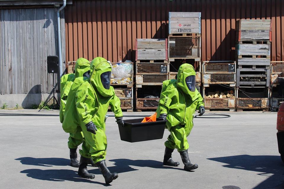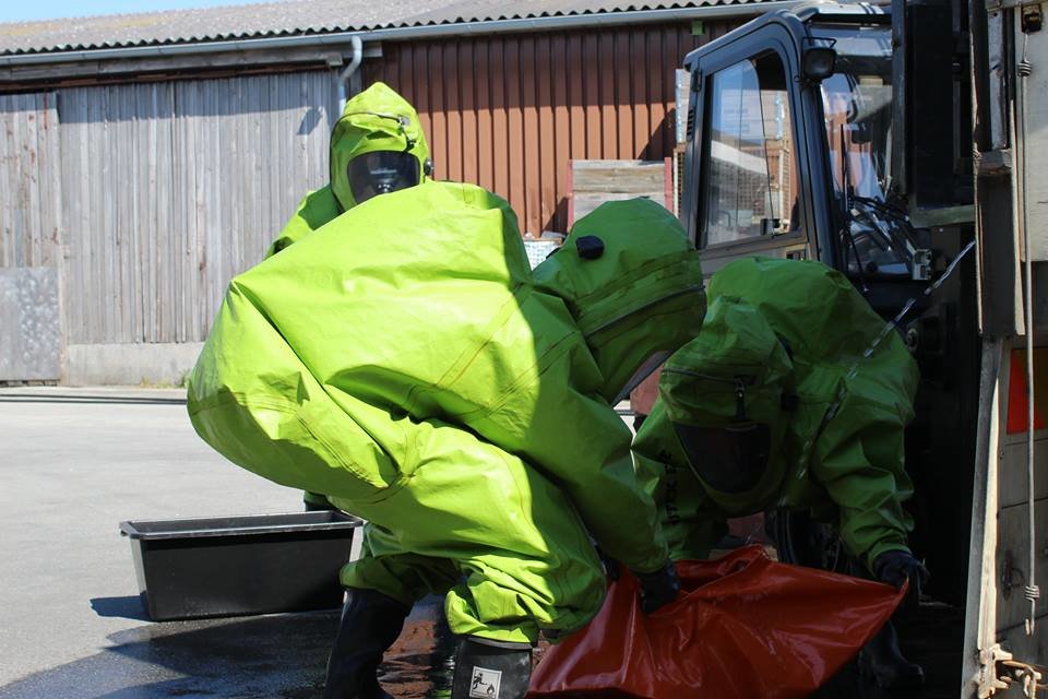 Von den nachrückenden Kräften wurde ein Trupp mit Schutzanzügen der Schutzstufe 3 ausgerüstet, welcher die Abdichtung der leck gewordenen Behältnisse vornahm. In der Zwischenzeit wurde der Dekontaminationsplatz vorbereitet. Nach dem erfolgreichen Einsatz wurden die Schutzanzugträger dekontaminiert.