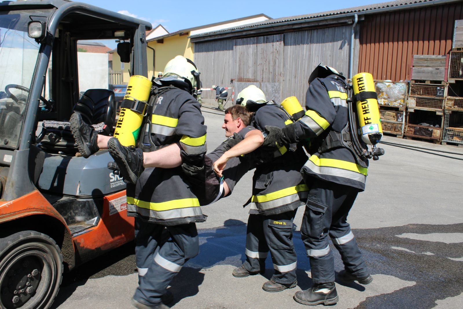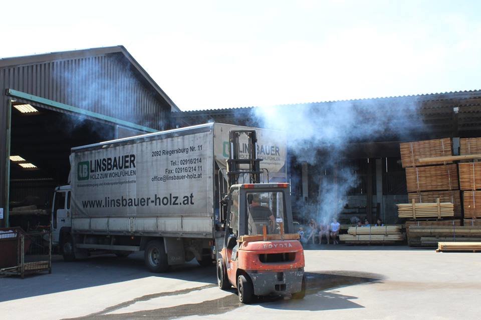 Gegen 15:00 Uhr erfolgte die Alarmierung. Während ein mit verschiedenen flüssigen Chemikalien beladener LKW am Gelände der Firma LINSBAUER entladen wurde stieß ein Stapler gegen die Behältnisse und der Inhalt begann auszutreten. Der Lenker des LKW´s und der Staplerfahrer verloren in der Folge das Bewusstsein.