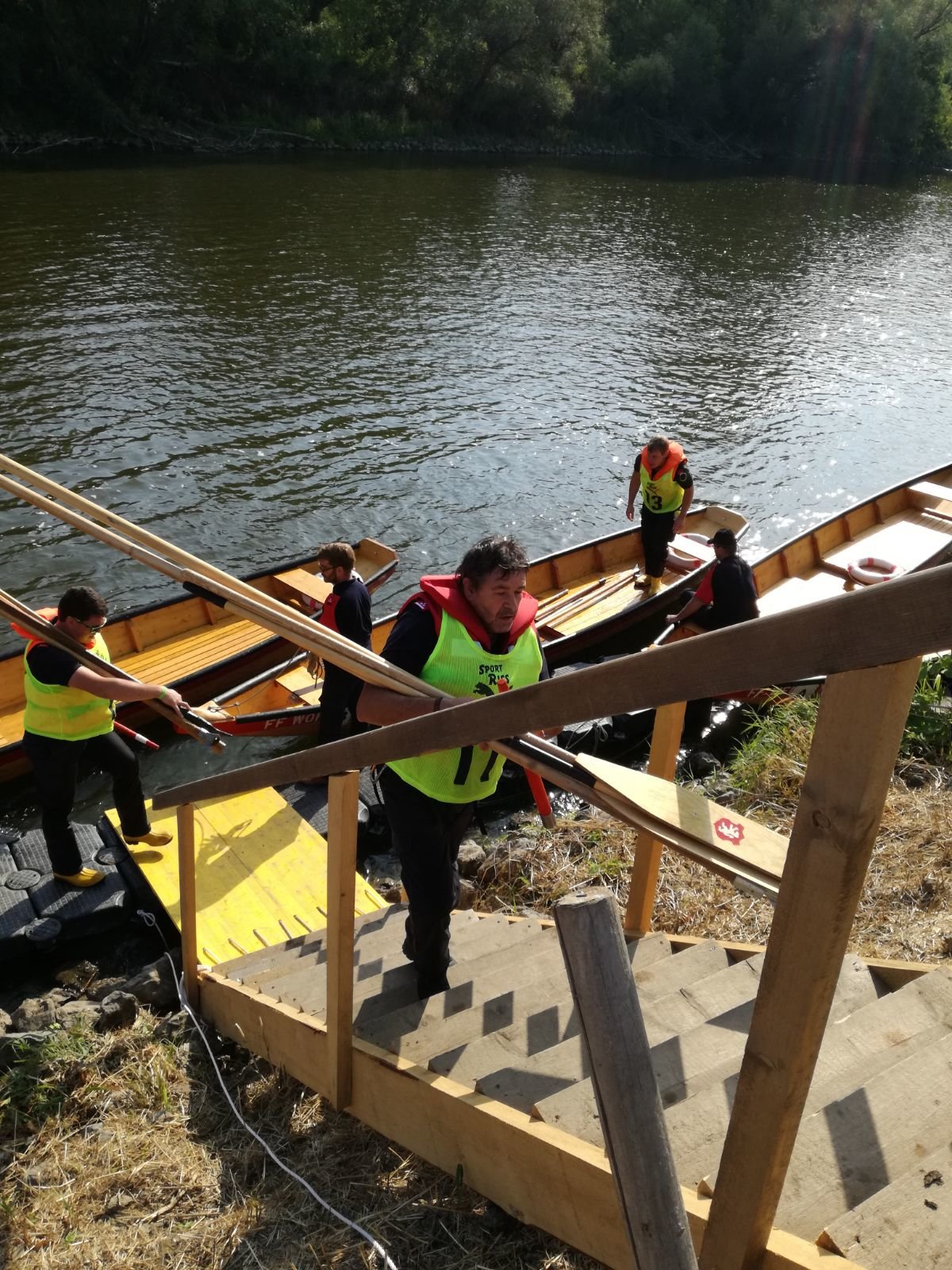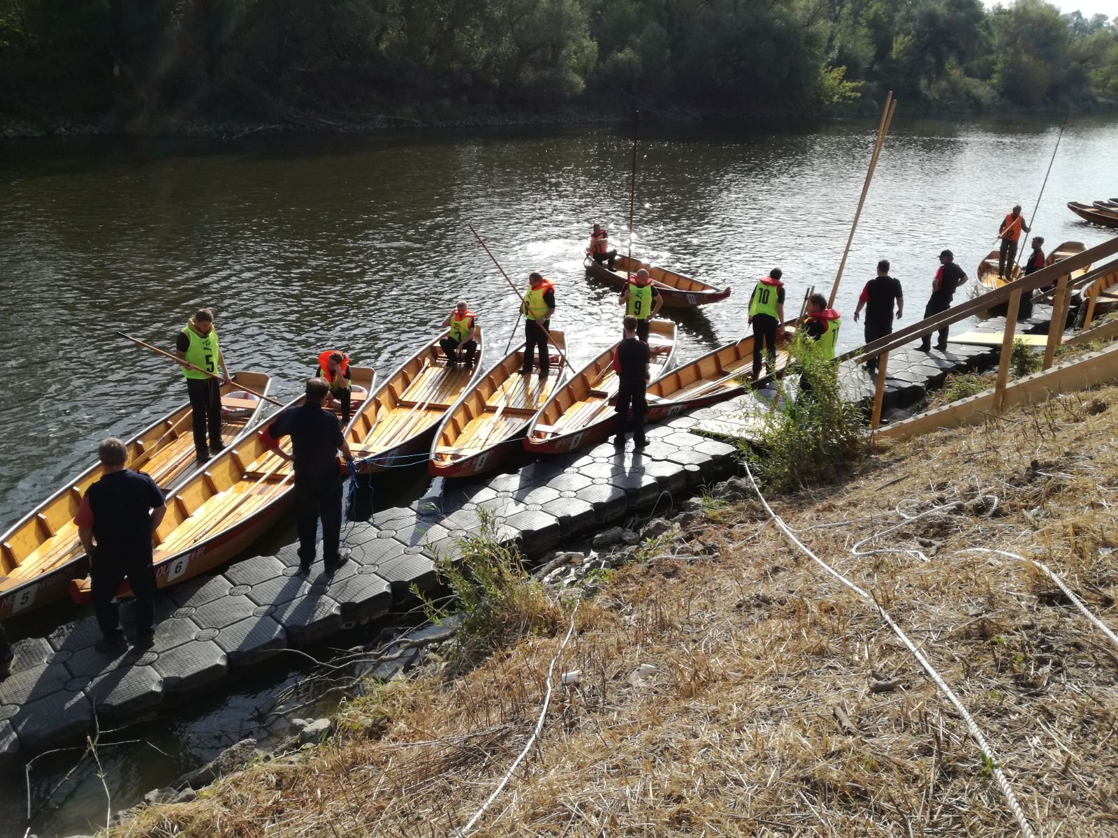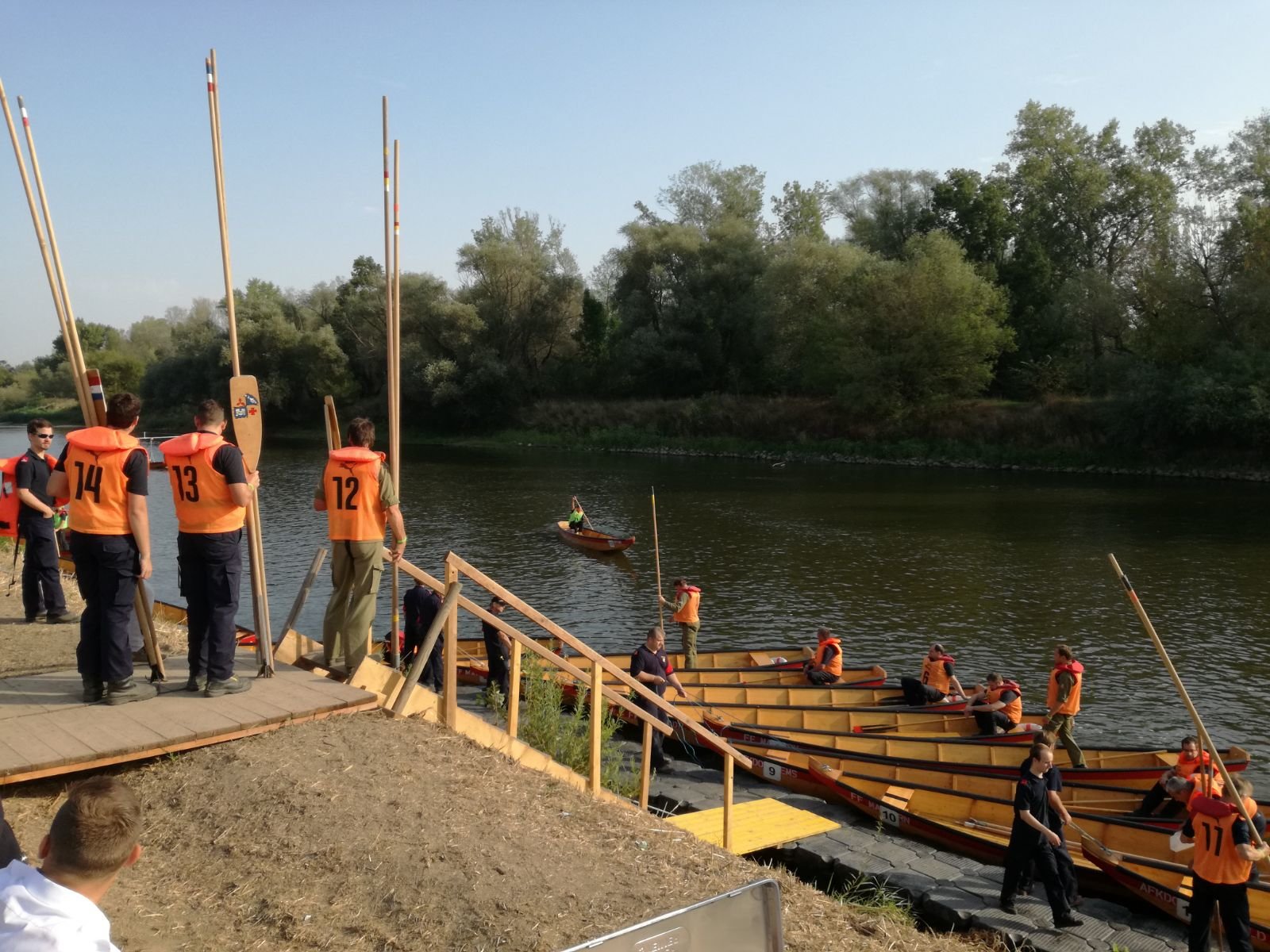 Nach dem die Knoten absolviert wurden, wird die Besatzung der Zille gelost und die Zillenbesatzung begibt sich mit den eigenen Fahrbehelfen (2 Schubstangen, 1 Schiffshaken und 3 Ruder) in die Feuerwehrzille.