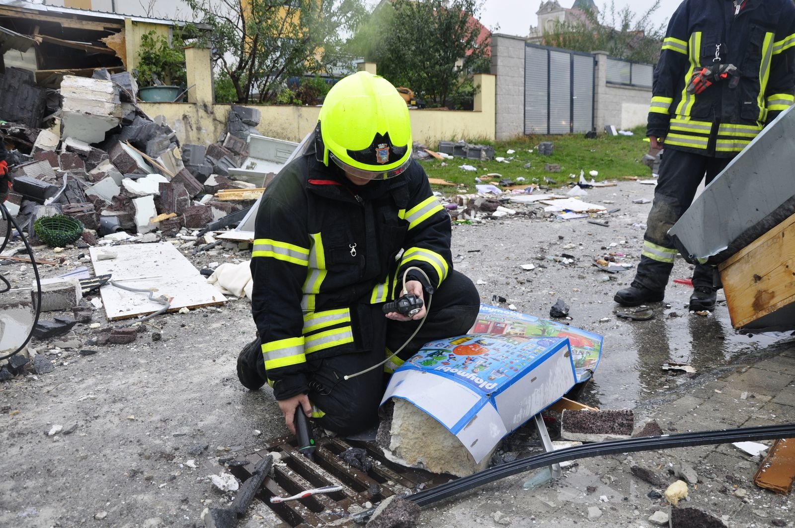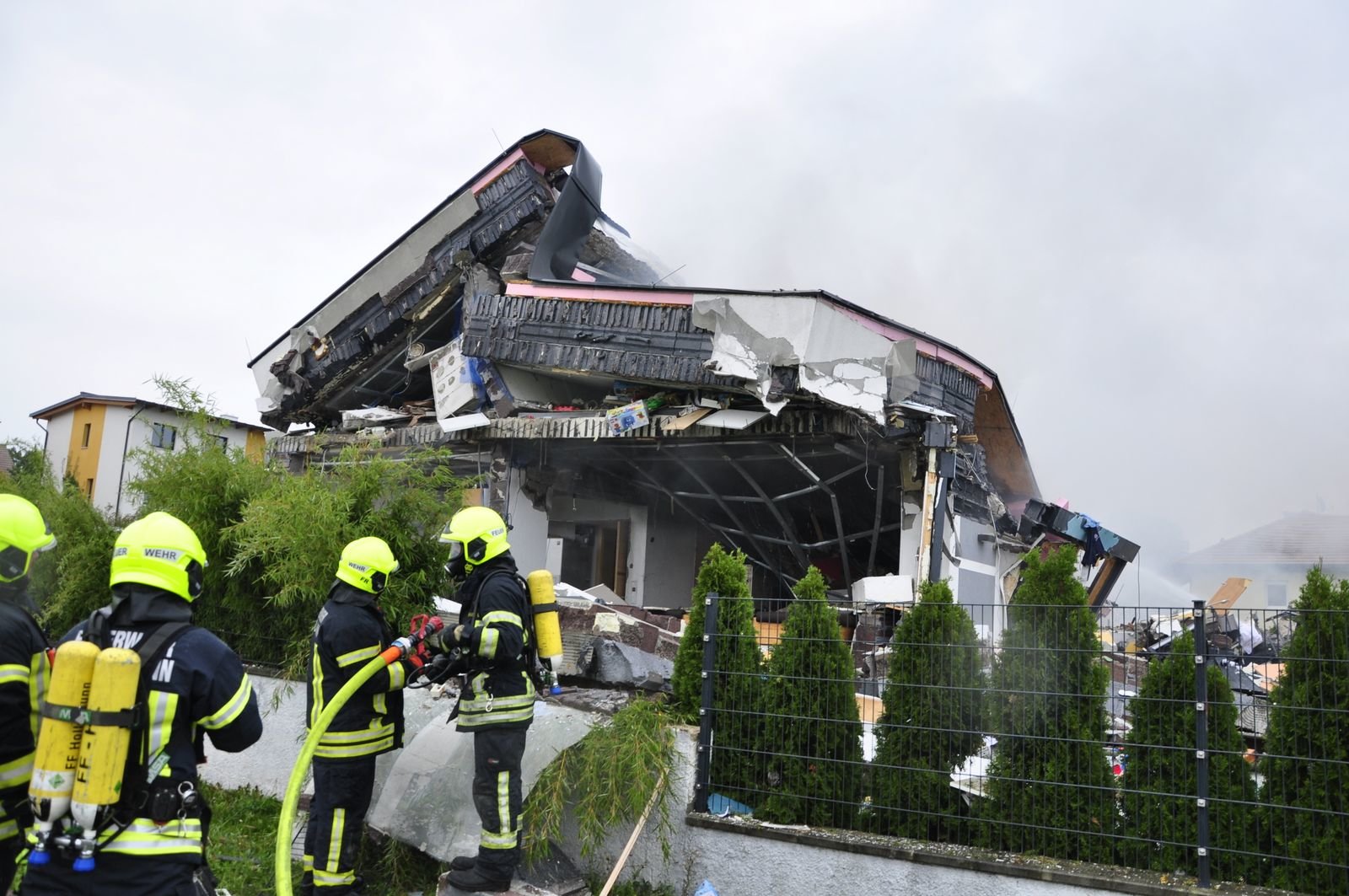 Zum Zeitpunkt der Explosion befanden sich eine Frau und ein Hund in dem Einfamilienhaus. Beide konnten das Gebäude schwer verletzt verlassen. Die Frau konnte noch Angaben machen, dass sich niemand mehr im Gebäude befindet. Sie wurde mit schweren Verbrennungen mit dem Hubschrauber in eine Spezialklinik gebracht. Auch der Hund wurde mit schweren Verbrennungen in eine Tierklink gebracht.