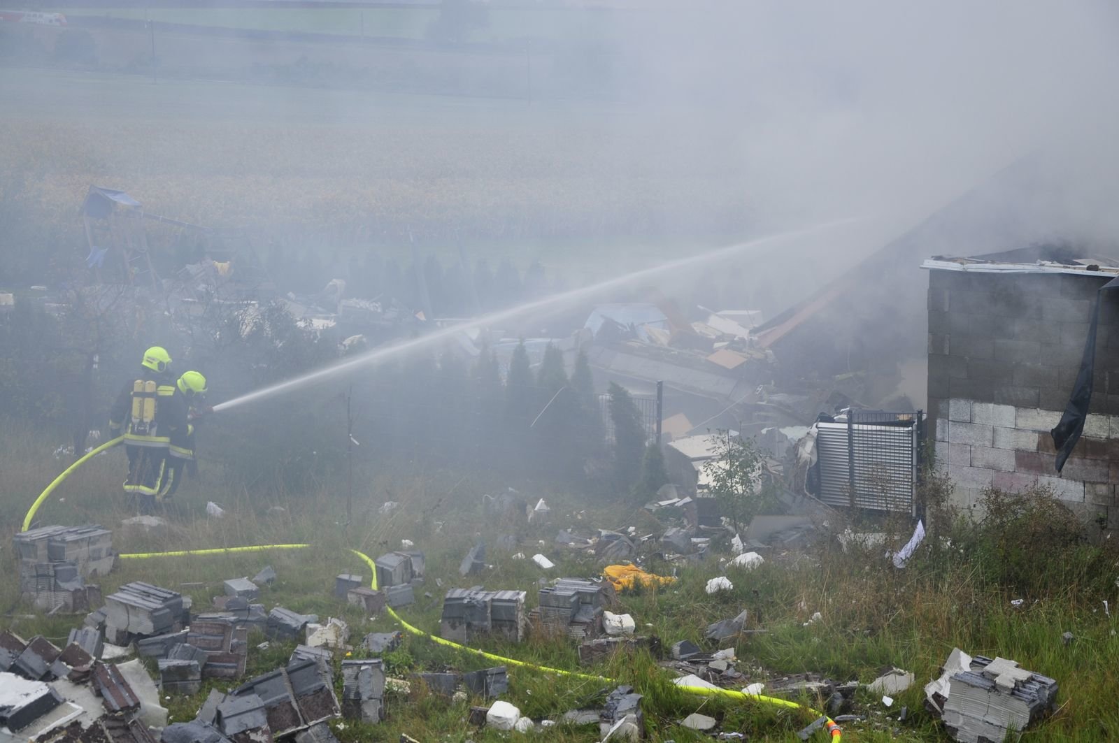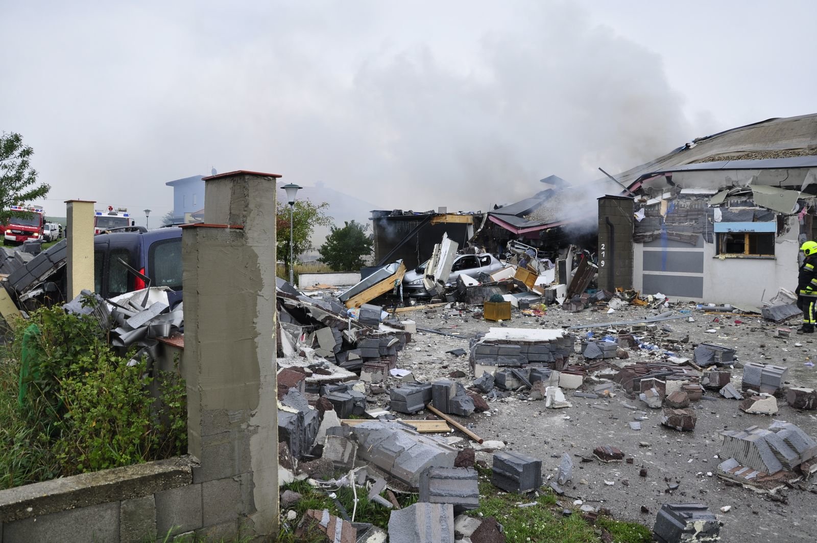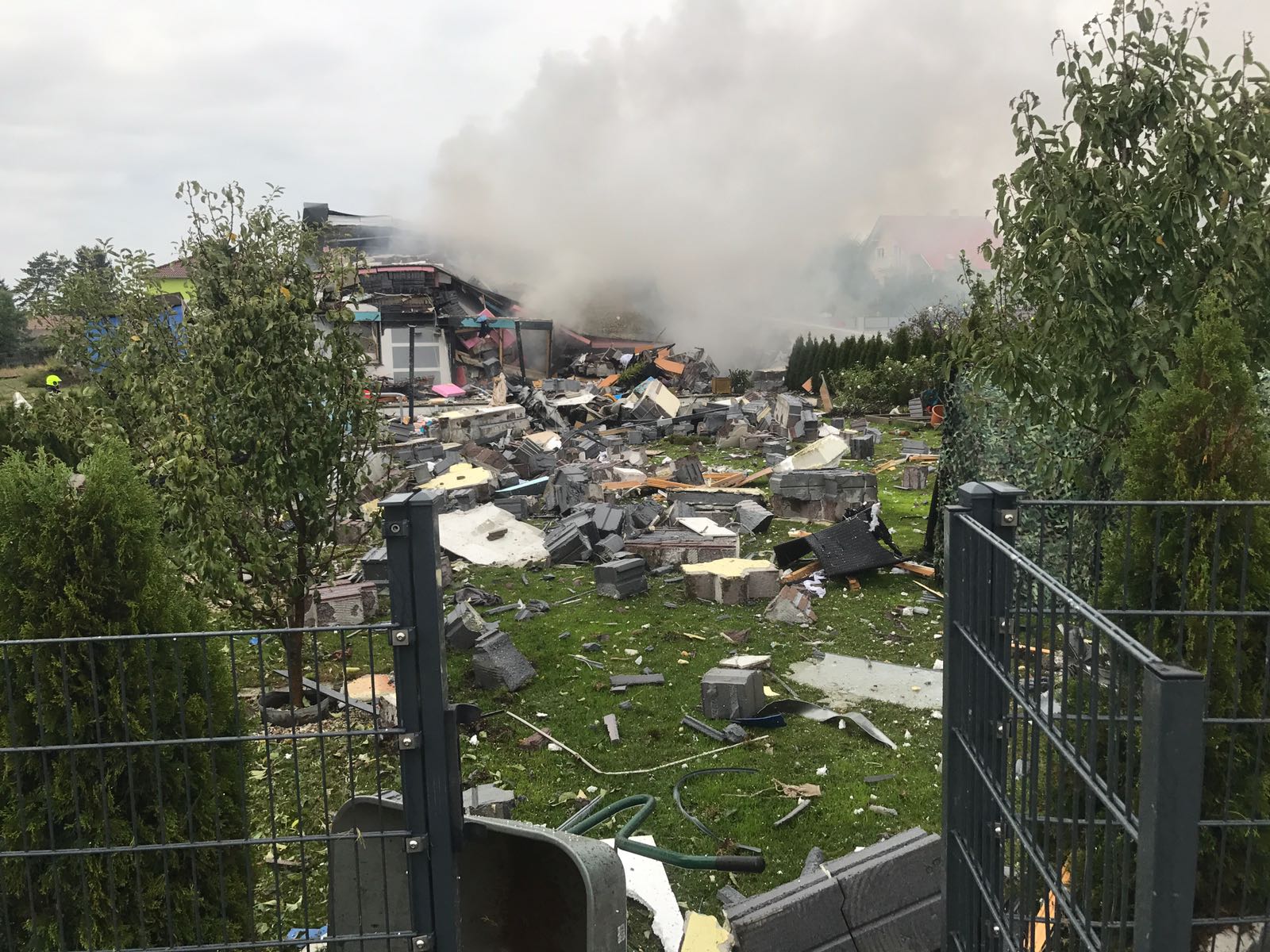 Das Wohnhaus wurde bei der Explosion komplett zerstört. Ganze Mauerteile flogen meterweit durch die Luft. Die genaue Ursache der Explosion wird durch die Polizei ermittelt.