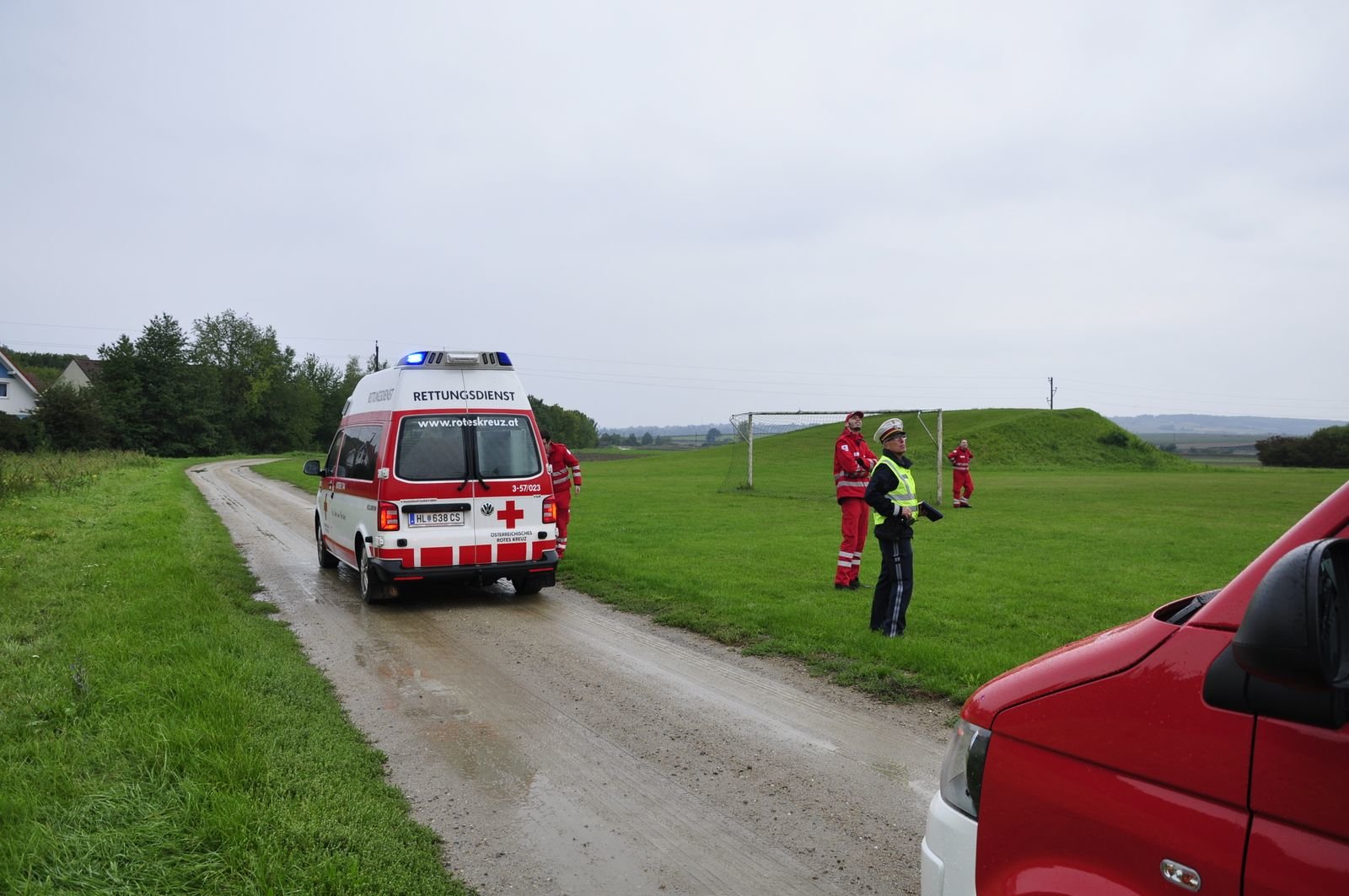 Ebenfalls im Einsatz 4 Fahrzeuge Rotes Kreuz, Notarzthubschrauber Christophorus 2, 5 Streifen der Polizei und die EVN.