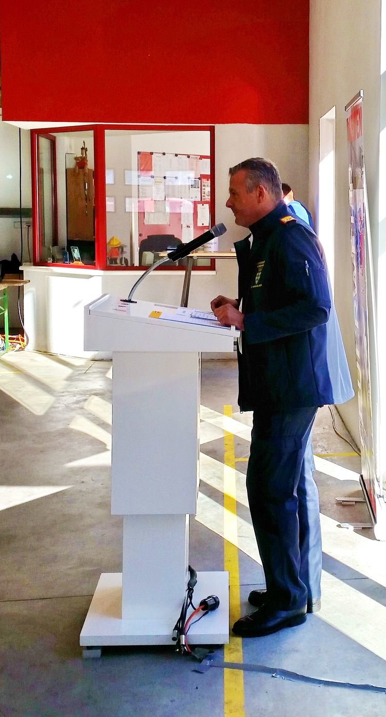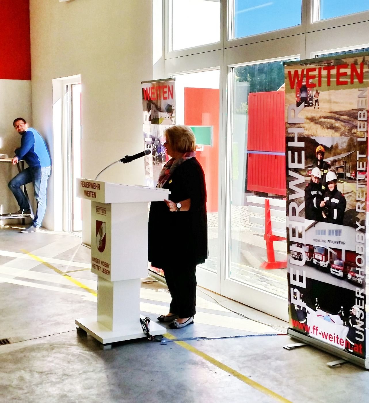 Nach gemeinsamer Fahrt und Eintreffen im Feuerwehrhaus Weiten gab es Frühstück. Der Bezirksfeuerwehrkommandant des Bezirkes Melk begrüßte die Senioren aus ganz NÖ und stellte kurz den Bezirk Melk vor. Es folgte die Begrüßung durch LBD Dietmar Fahrafellner mit verschieden Informationen über das Feuerwehrwesen. Frau Bürgermeisterin Margit Straßhofer begrüßte im Namen aller Gemeinden der Landesausstellung und wünschte einen schönen Aufenthalt. Während der Begrüßungen wurde die Feuerwehr Weiten zu einem Schadstoffeinsatz in Pögstall alarmiert. Diesen Schadstoffeinsatz, der auch durch die Medien ging, konnten die Senioren am Rande mitbeobachten.