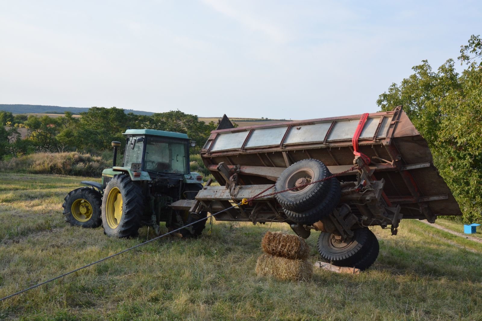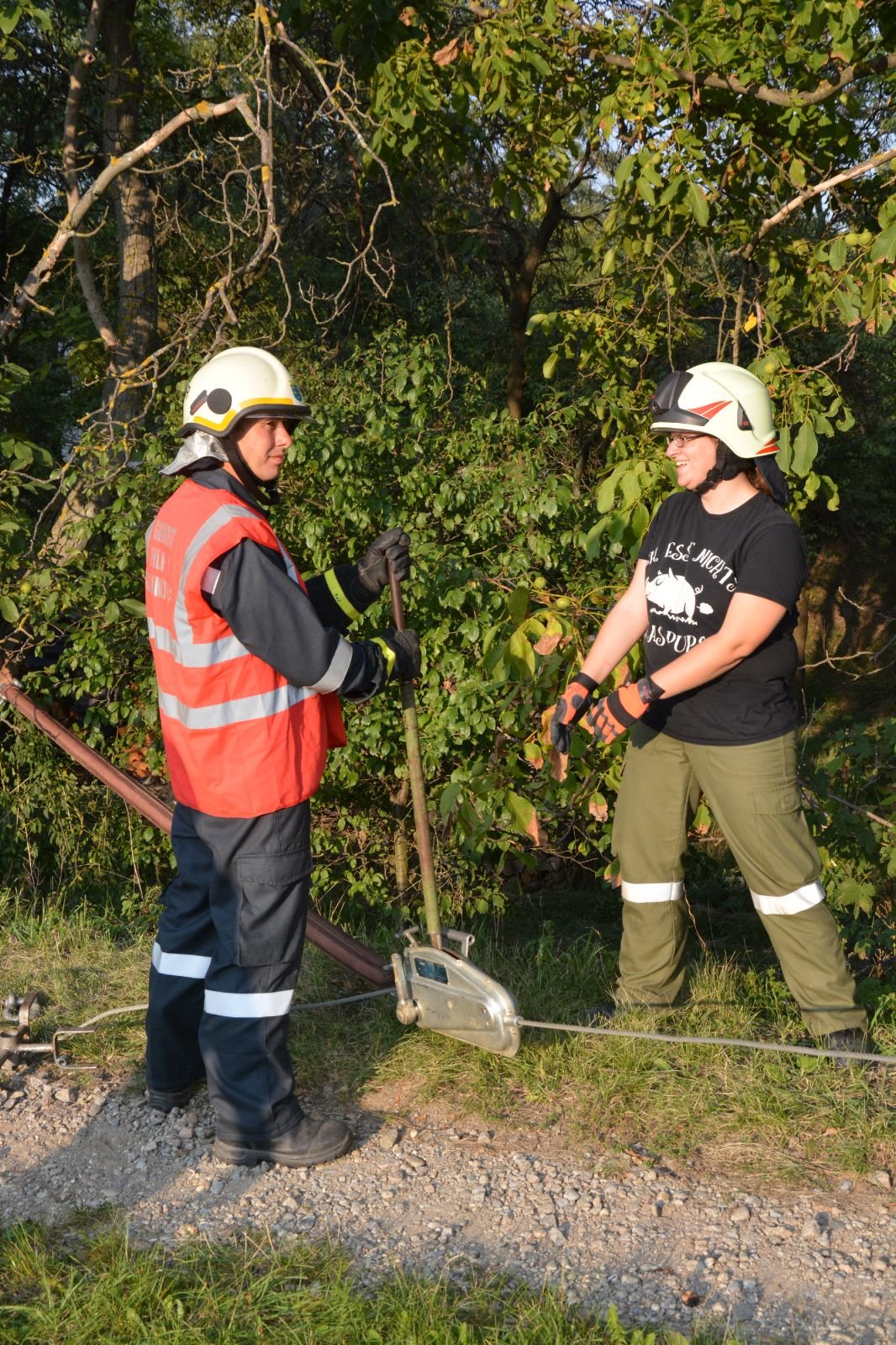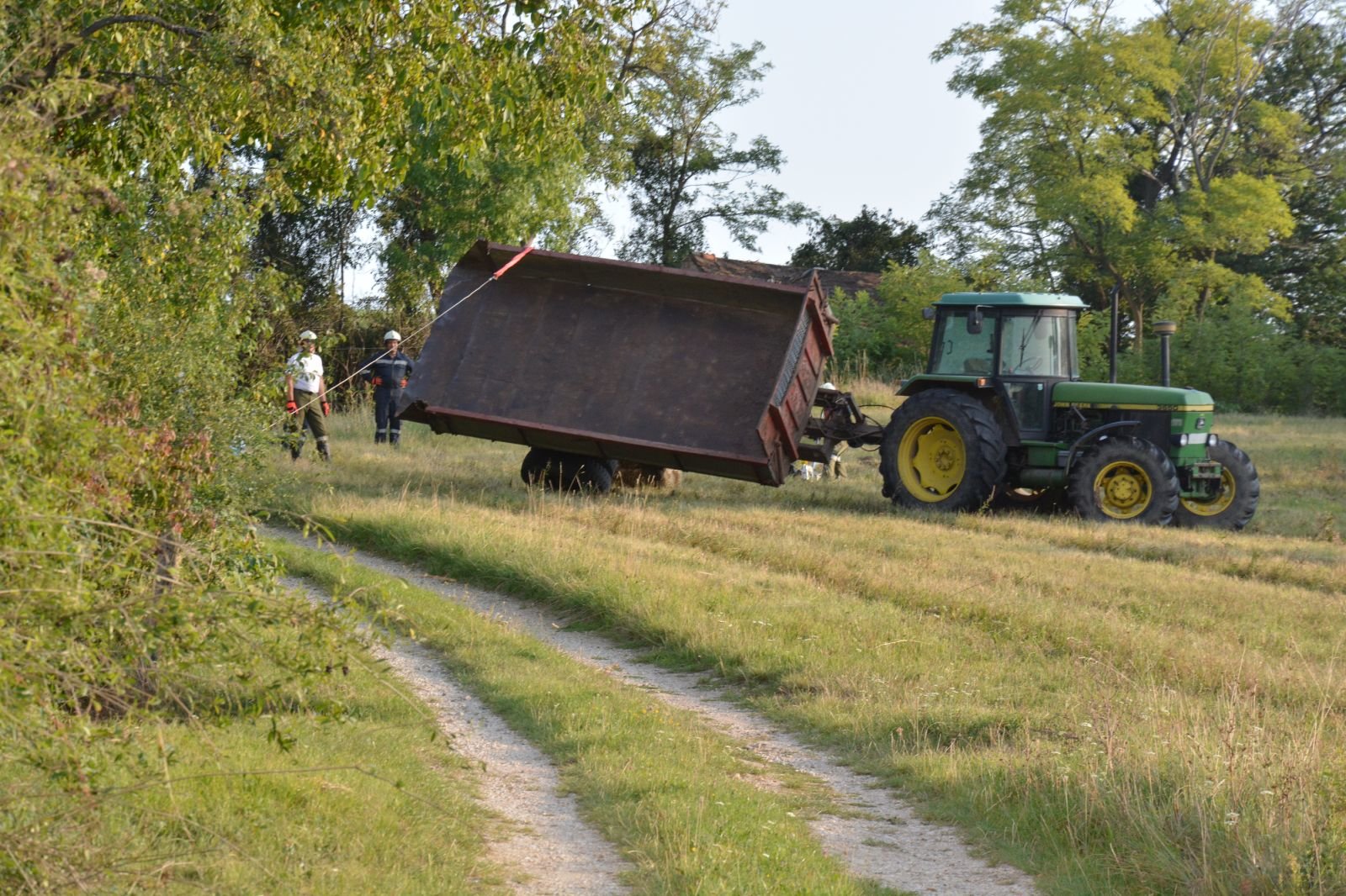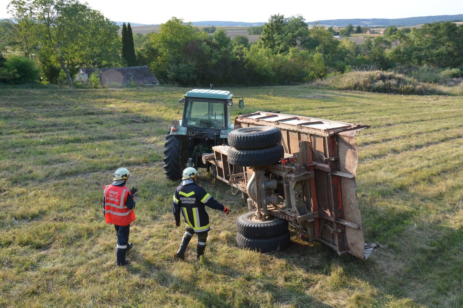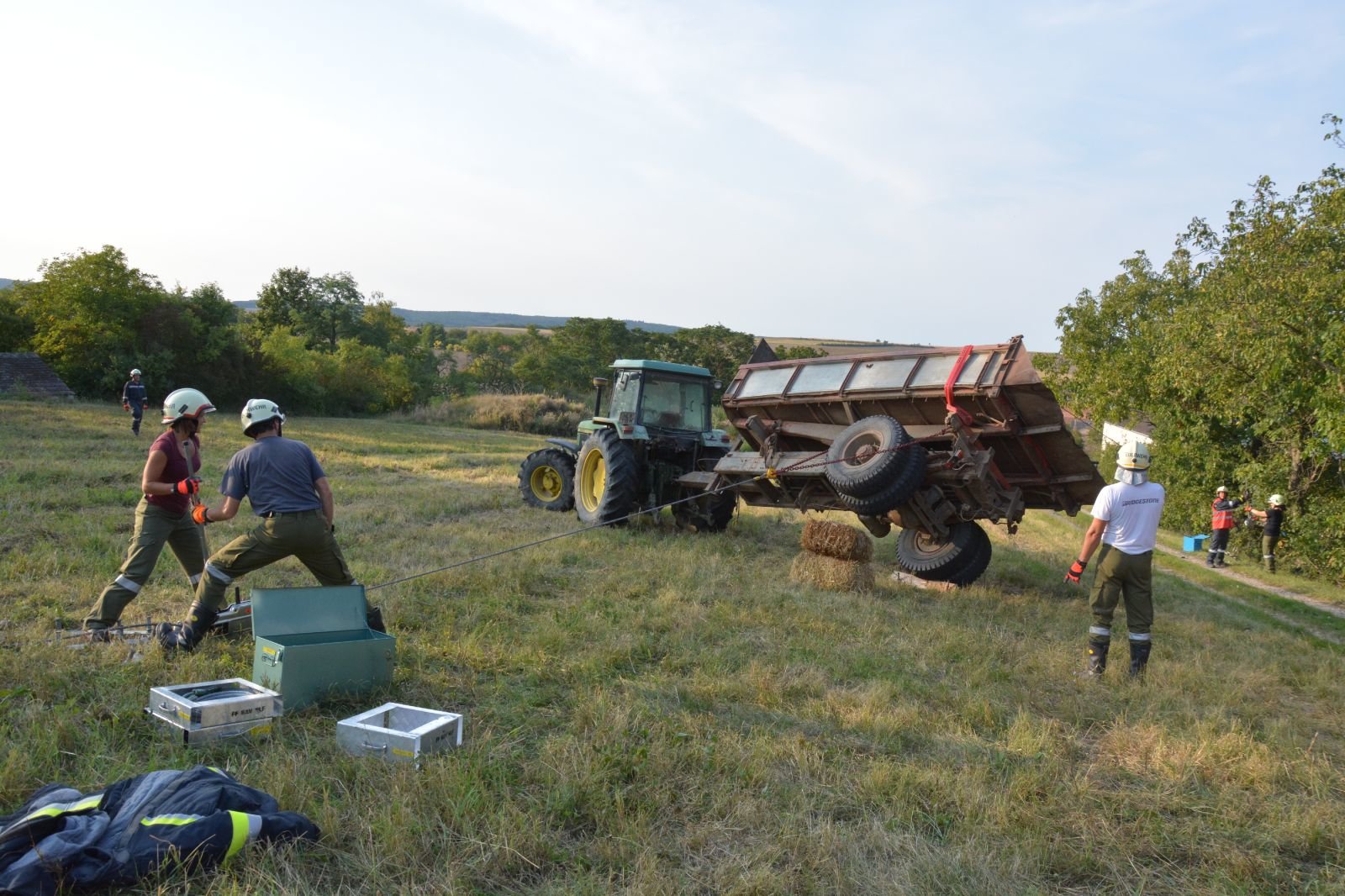 2.) Umgefallener Anhänger: mit Hilfe von zwei Greifzügen einen Anhänger aufstellen –> FF Gaindorf