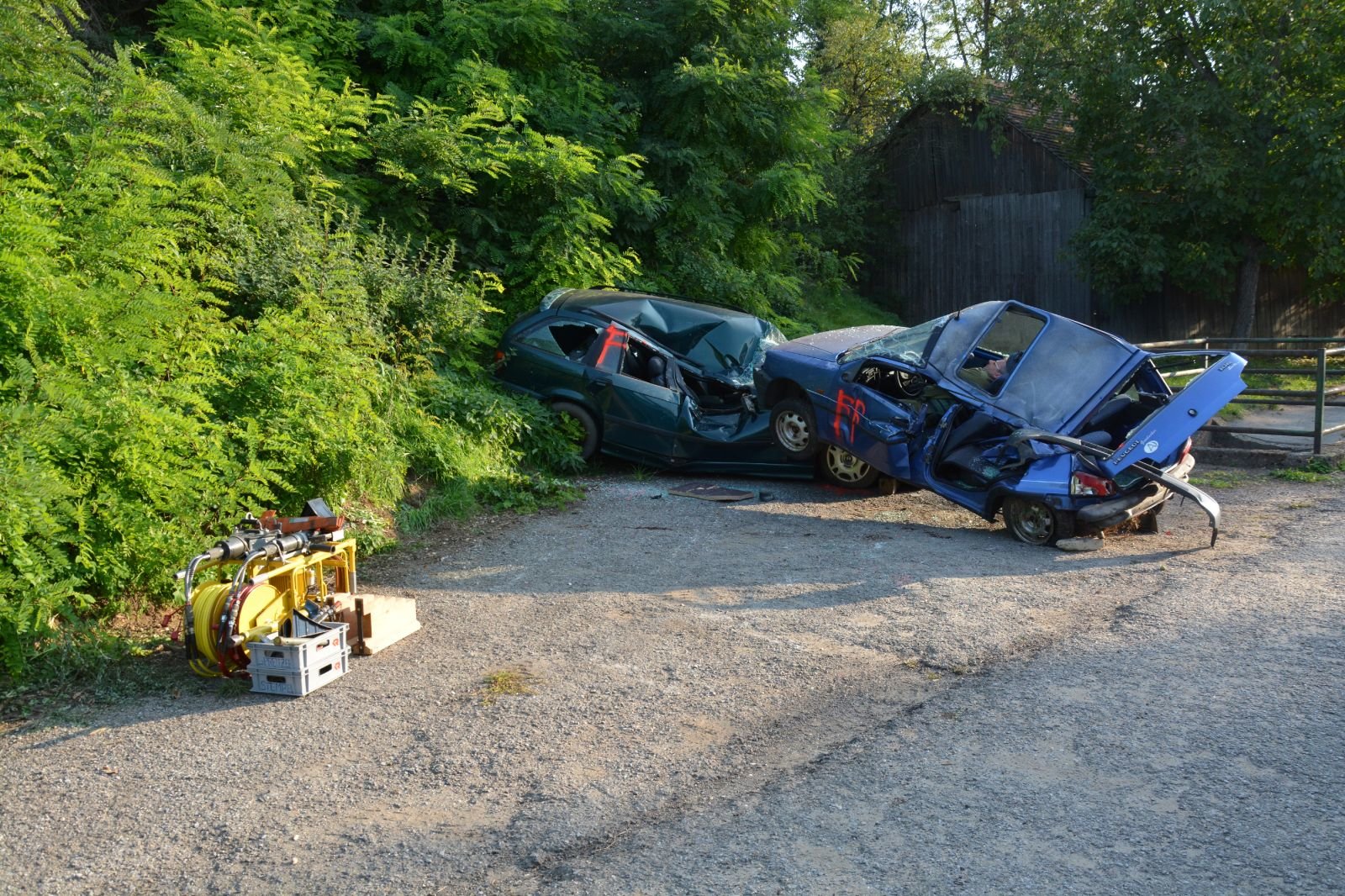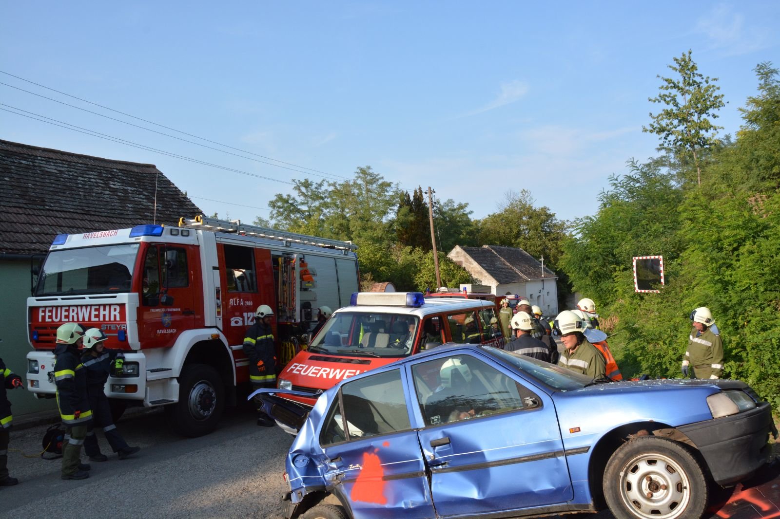 3.) Verkehrsunfall mit 2 PKW’s mit einer eingeklemmten Person: Rettungssatz von FF Ravelsbach –> FF Pfaffstetten