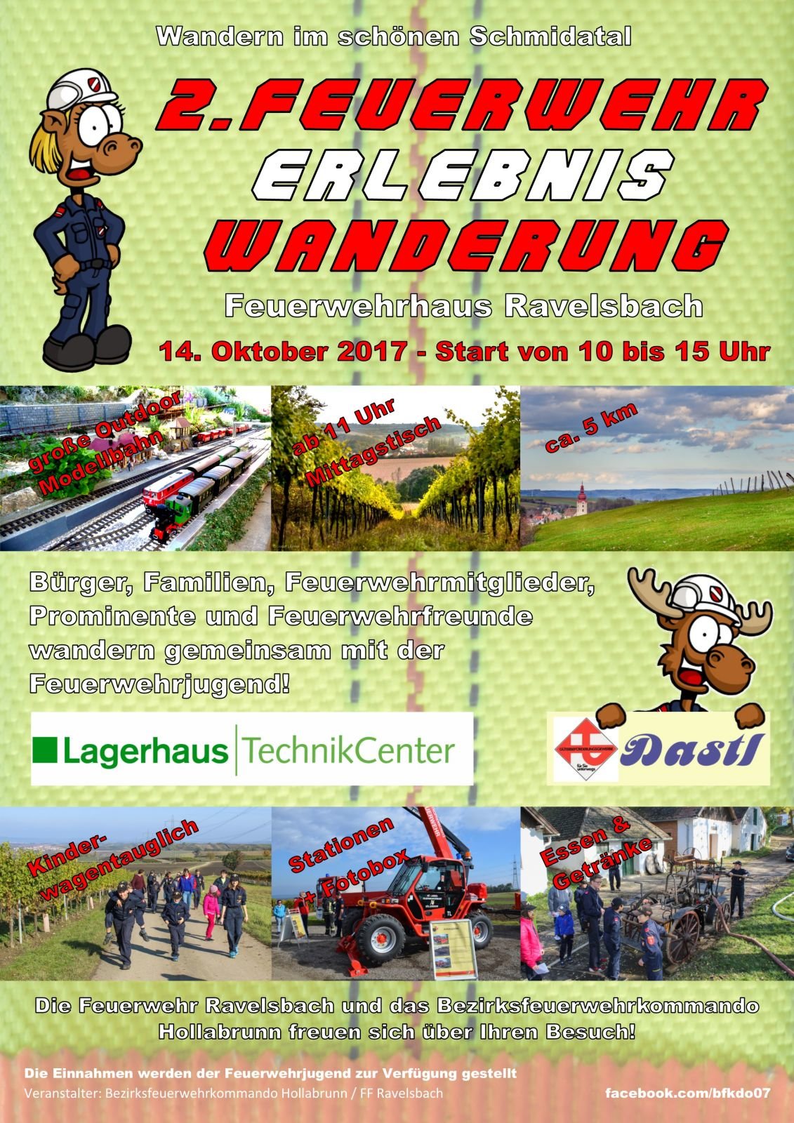 Die Feuerwehr Ravelsbach und das Bezirksfeuerwehrkommando Hollabrunn laden zur zweiten Feuerwehr-Erlebnis-Wanderung am 14. Oktober 2017.