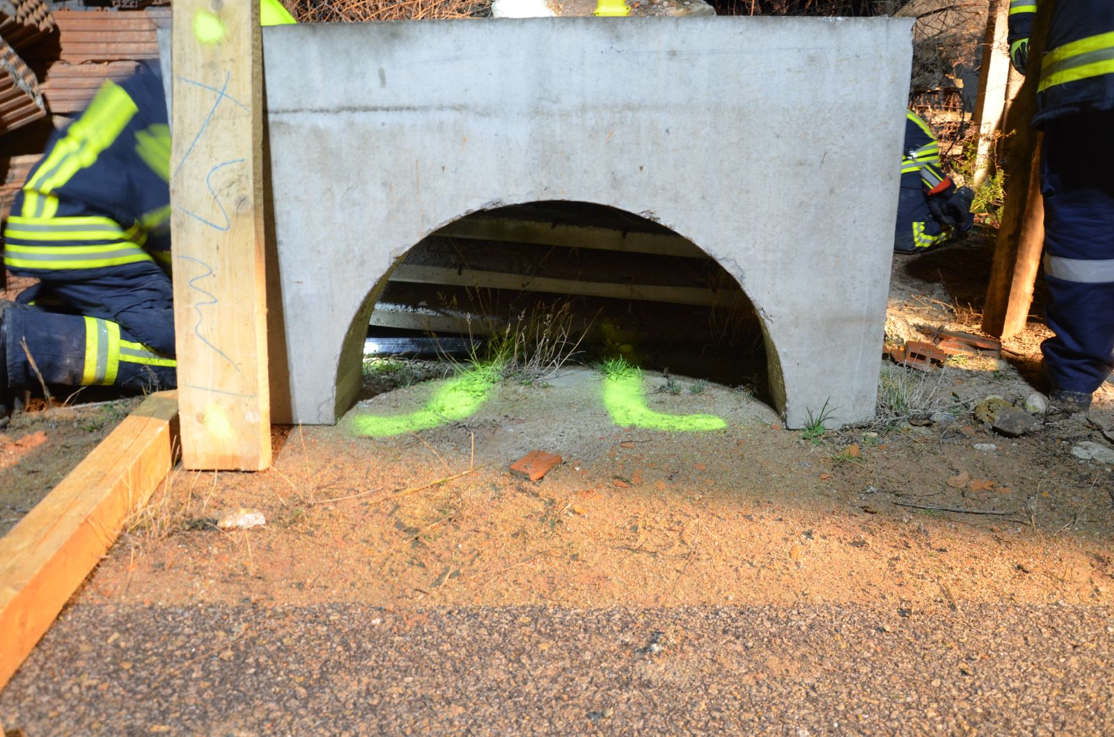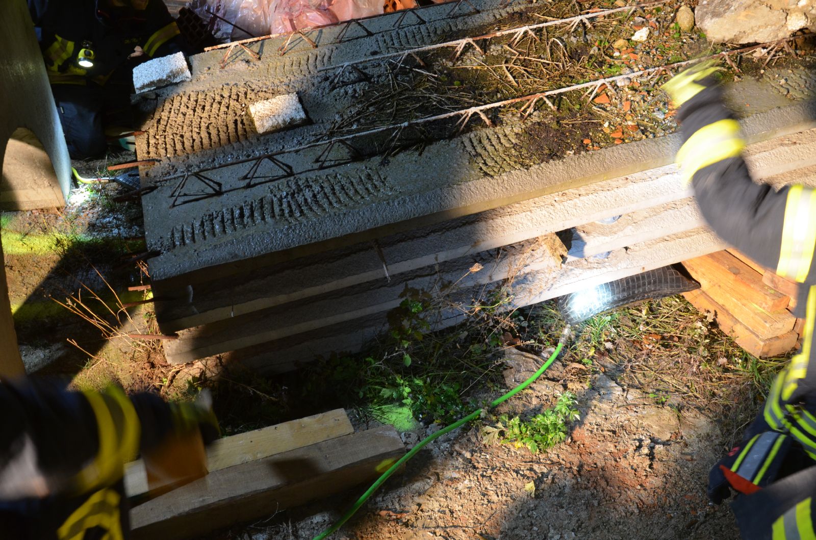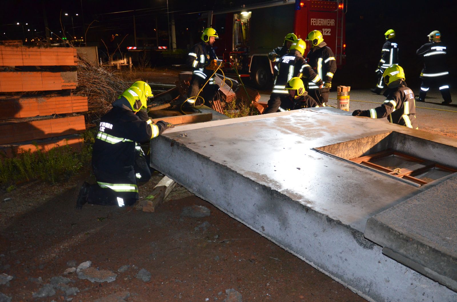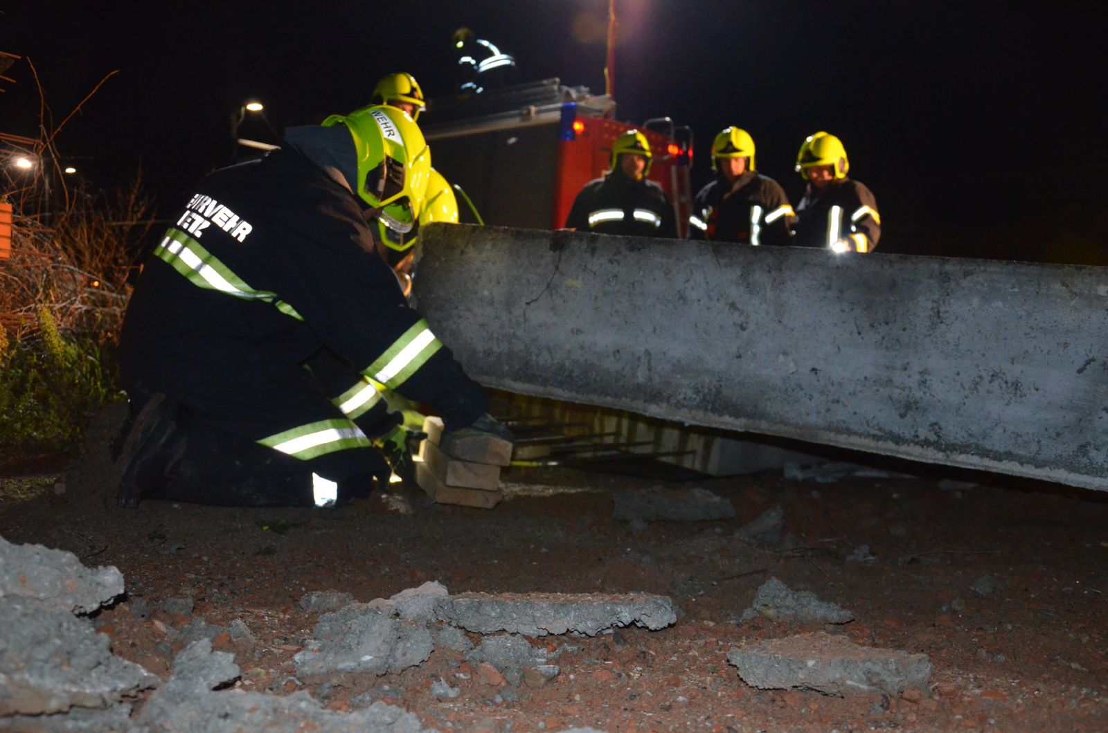 Als zweite Übungsannahme war eine Person unter Deckenelemente verschüttet. Auch hierbei wurde die Aufgabe der Rettung mittels Hebekissen und Pölz Holz bravourös erfüllt.