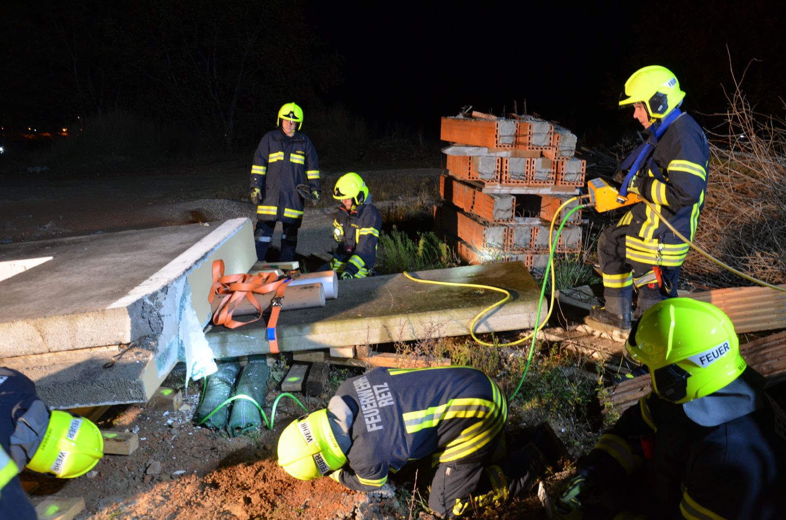 Am Samstag, den 25. November 2017 übten die Mitglieder der Feuerwehr Retz die Rettung von zwei Personen, welche aufgrund eines Gebäudeeinsturzes nach einer Explosion, verschüttet wurden.