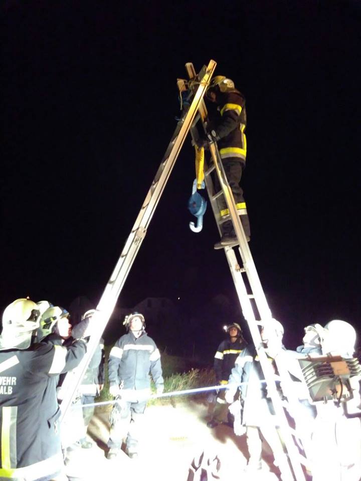 Die FF Obernalb übte am 04.11.2017 die Rettung einer in einen Schacht gestürzten Person. Dazu wurden 2 Möglichkeiten der Menschenrettung durchgeführt.