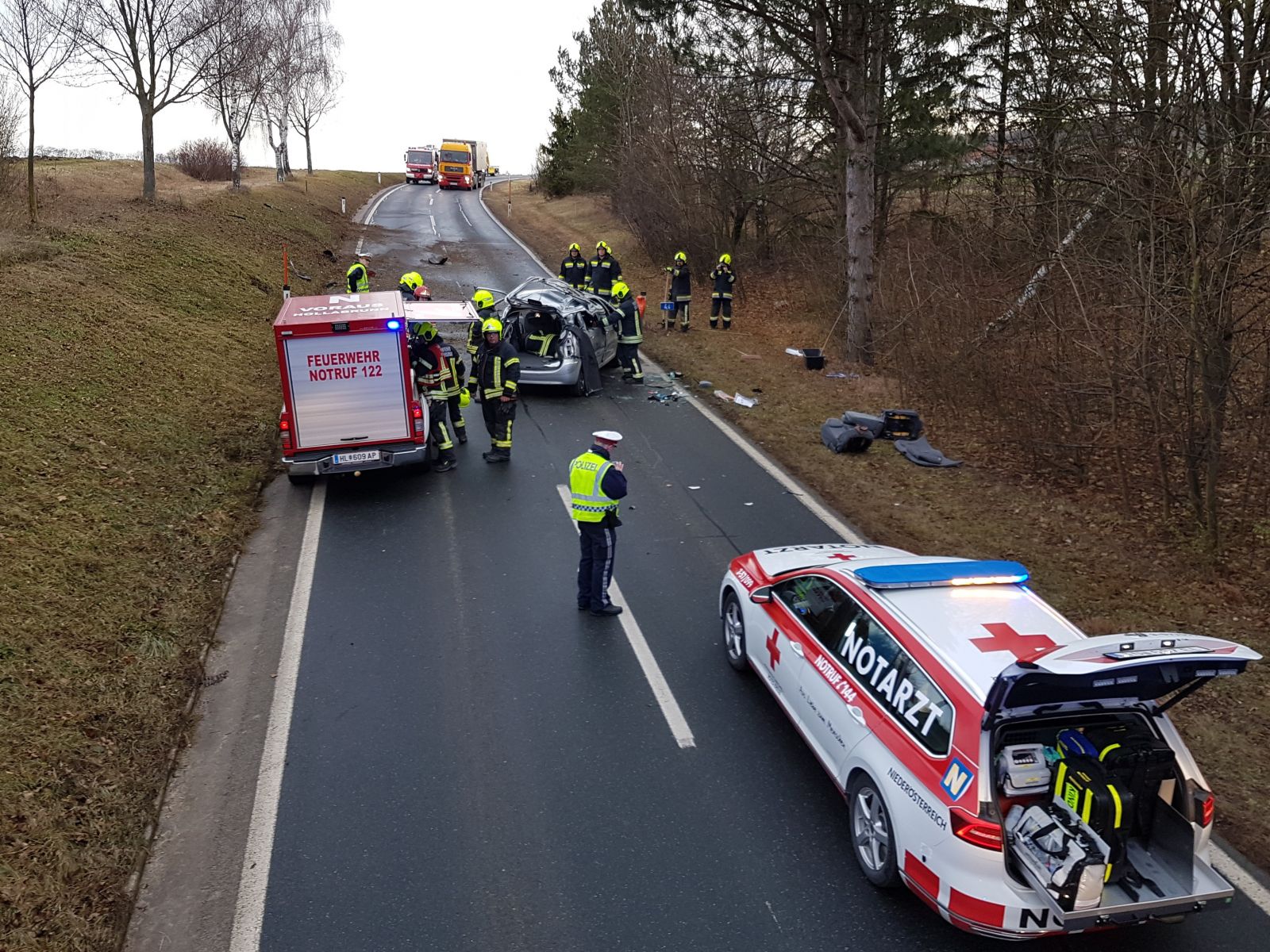 Am Morgen des 11.12. wurden die Freiwilligen Feuerwehren Aspersdorf, Hollabrunn und Wullersdorf zu einem Verkehrsunfall auf die LB40 alarmiert.