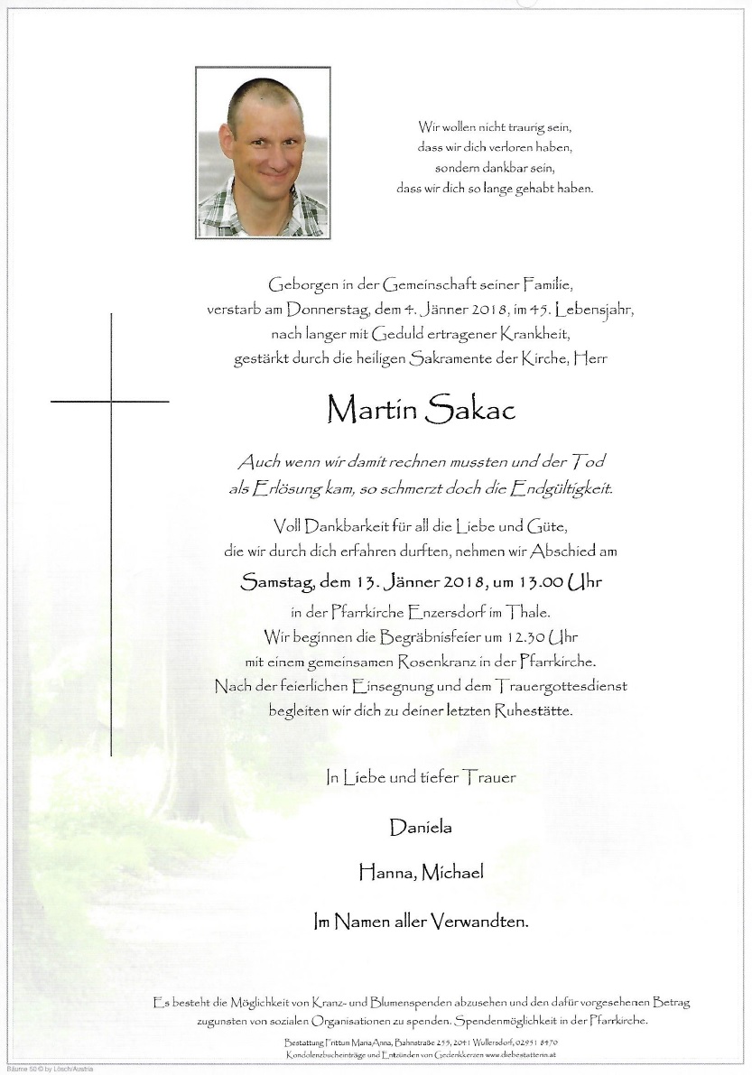 Das Abschnittsfeuerwehrkommando Hollabrunn erfüllt die Pflicht, Nachricht vom Ableben unseres Kameraden BI Martin Sakac (FF Enzersdorf im Thale – Kleinkadolz) zu geben und Nachruft zu halten: