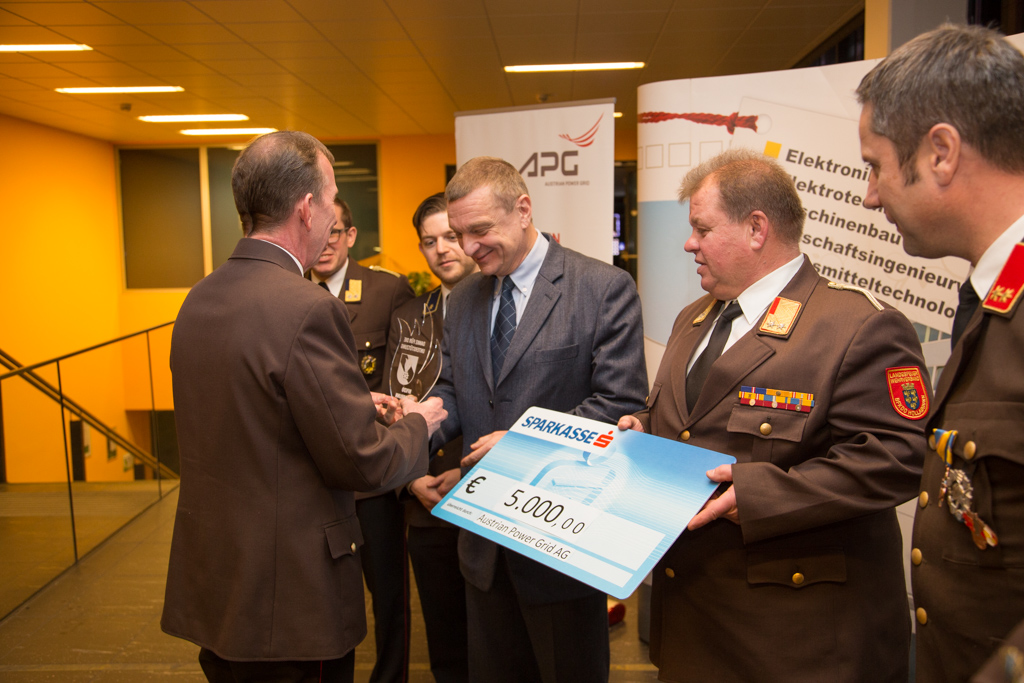 Die Firma APG Austrian Power Grid übergab im Rahmen des Bezirksfeuerwehrtages am 22.02.2018 eine großzügige Spende zur Notstromversorgung des Bezirksführungsstabes und der Bezirksalarmzentrale in Hollabrunn.