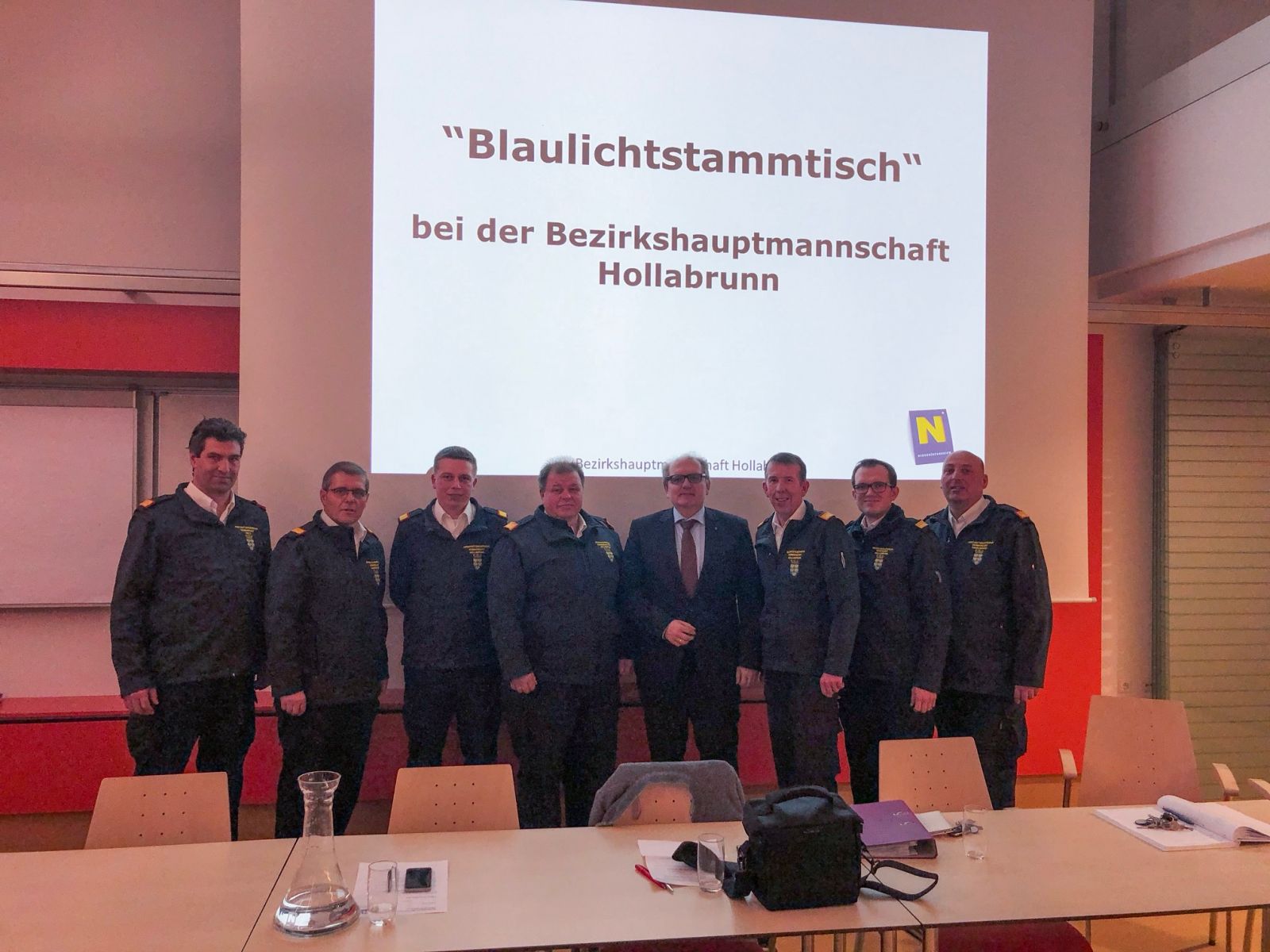Auf Einladung von Bezirkshauptmann Mag. Andreas Srobl fand am 27.02.2018 der erste Blaulichtstammtisch im Sitzungssaal der Bezirkshauptmannschaft Hollabrunn statt.