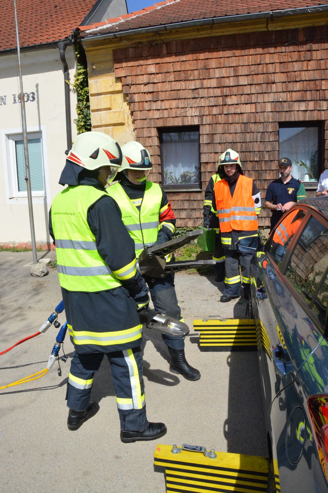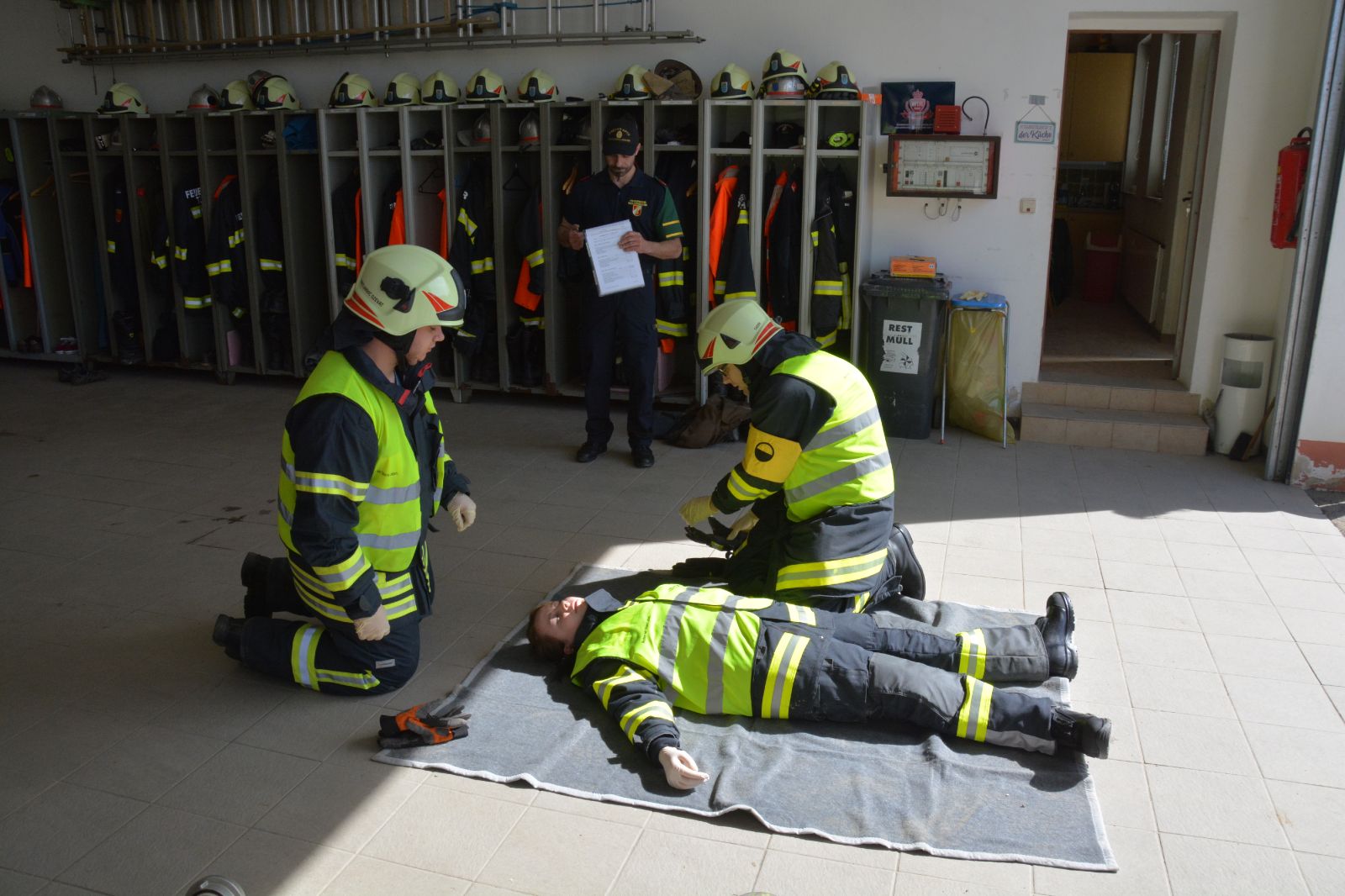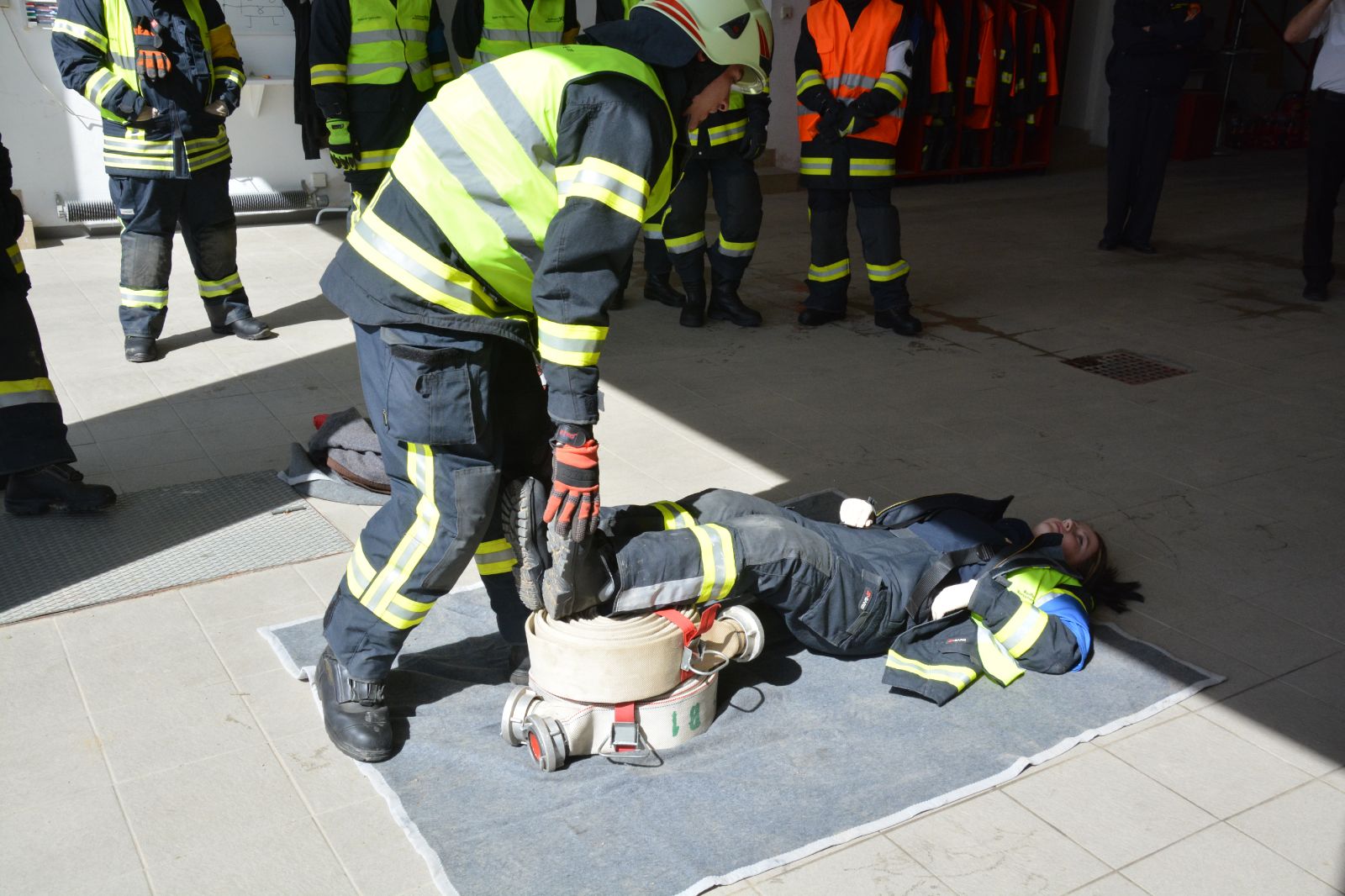 Gefordert wurde: 1.) Erste Hilfe 2.) Gerätekunde: Geräte des SRF & TLF mussten blind gezeigt und erklärt werden 3.) Das Abarbeiten eines Verkehrsunfalles mit Menschenrettung.