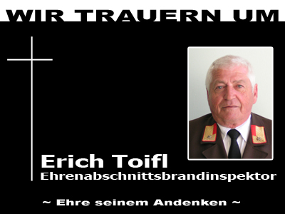 Völlig unerwartet erhielten wir die traurige Mitteilung, dass unser treuer Kamerad und ehemailge Kommandant Ehrenabschnittsbrandinspektor Erich Toifl im 71. Lebensjahr nach langer und schwerer Krankheit in der Nacht zum 8. April verstorben ist.