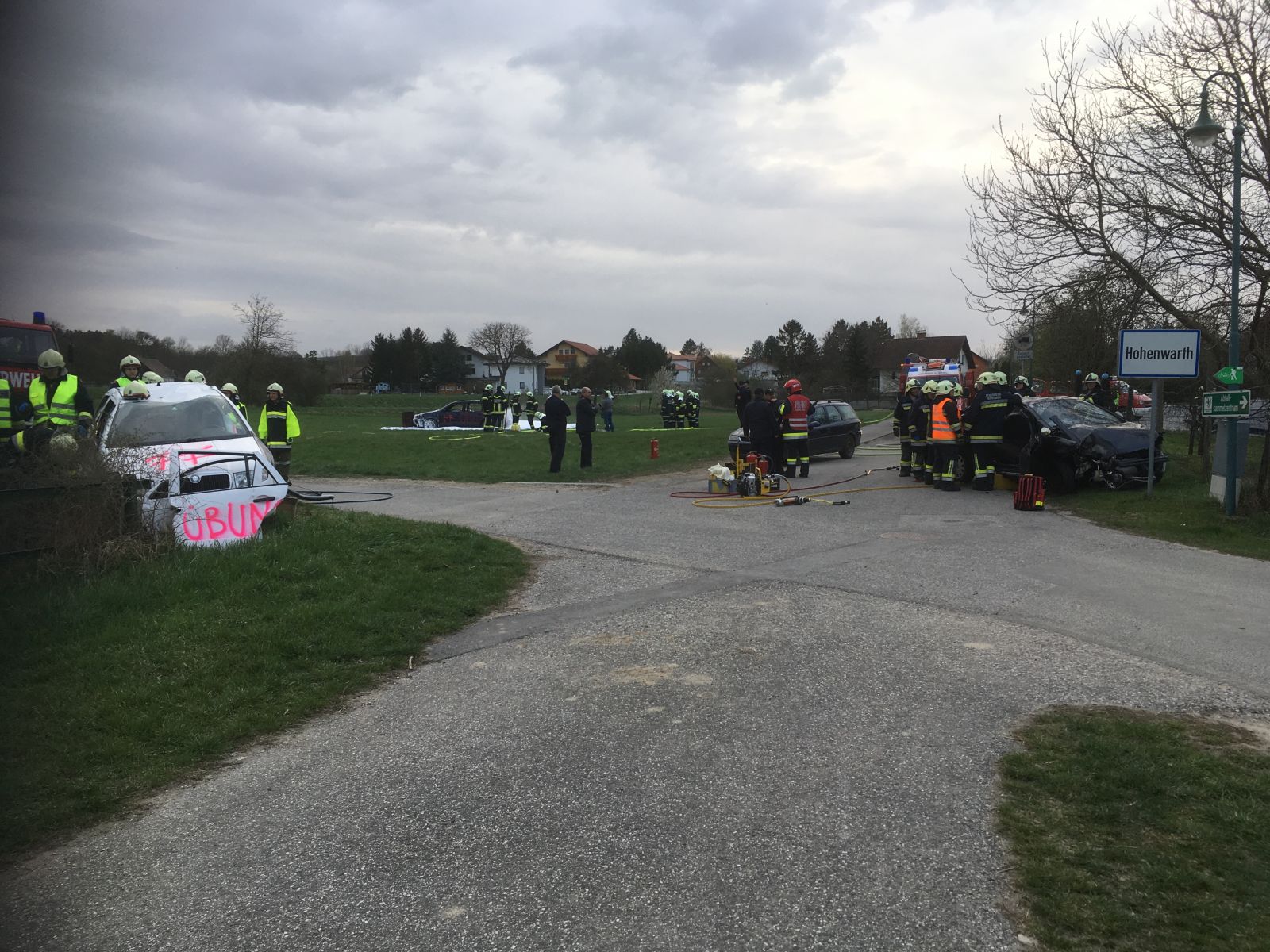 Zahlreiche Feuerwehrmitglieder der Feuerwehren Hohenwarth, Ebersbrunn, Mühlbach, Zemling und Bösendürnbach nahmen an der Unterabschnittsübung teil. Verkehrsunfall mit vier beteiligten PKW – aus zwei PKW mussten mittels hydraulischen Rettungsgeräten die „Übungspersonen“ befreit werden, in einem PKW waren 4 leicht verletzte Personen, diese konnten selbstständig den PKW verlassen und wurden von den Feuerwehrmitgliedern betreut, und bei einem PKW musste der PKW-Brand mittels Schaum gelöscht werden. Eine anspruchsvolle Übung die alle beteiligten Feuerwehrmitglieder forderte, und von allen Übungsbeobachtern gelobt wurde!