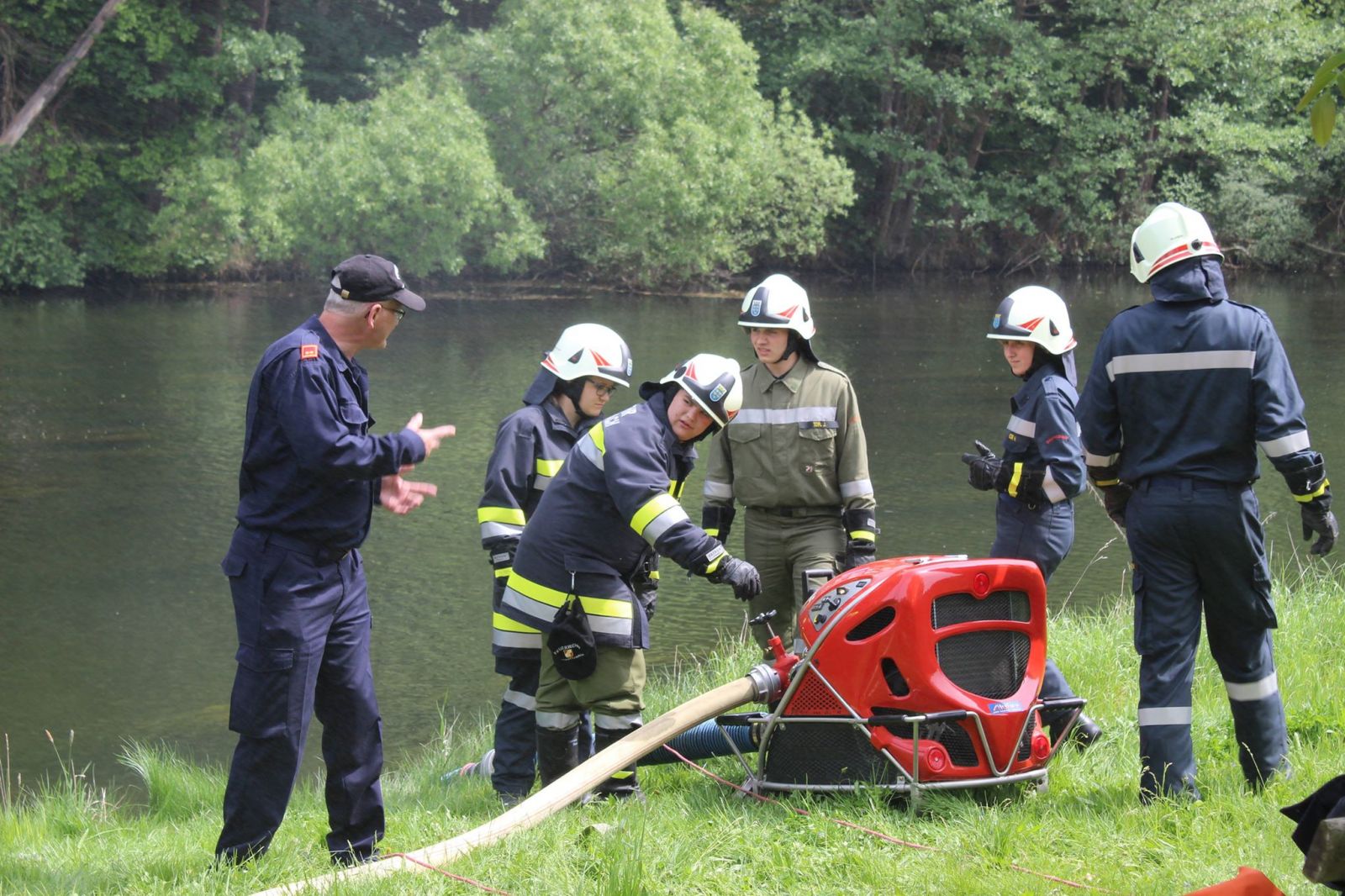 Die richtige Verwendung einer Tragkraftspritze, eines Notstromaggregates und einer Tauchmotorpumpe wurde gelehrt.  Am Ende konnten alle Teilnehmer das Ausbildungssziel erreichen.