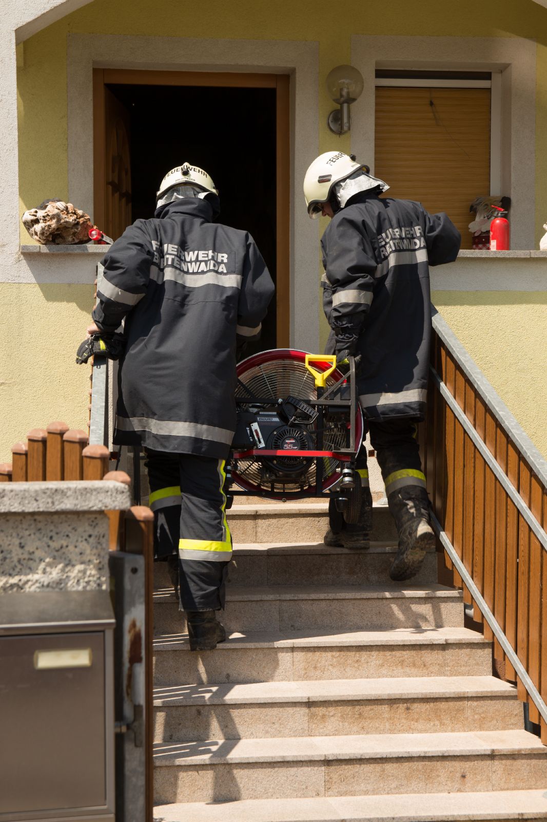 Zwei Atemschutztrupps führten die Nachlöscharbeiten durch. Mittels Druckluftbelüfter wurden die Wohnräume rauchfrei gemacht.